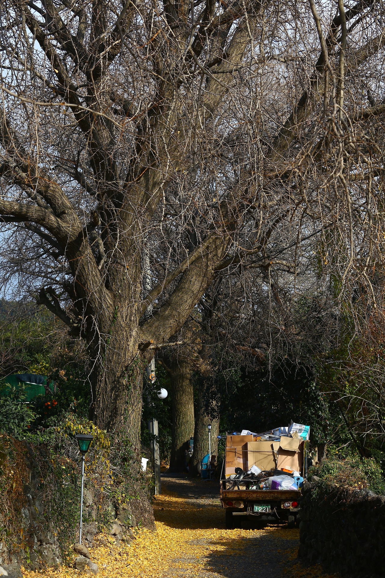 서귀포에 큰 은행나무가 있다는 것을 늦게서야 알게 됐다. 엄청나게 크고 오래된 나무... 노란 카펫이 깔린 사진을 보면서 내가 제주를 너무 띄엄띄엄 봤구나라는 걸 새삼 깨닫는다. 한 열흘이라도 먼저 알았더라면... 하지만 내겐 제주에서의 내년이 없다. 그래서 지난 주말에 찾아갔다. 은행잎은 이미 모두 떨어졌고 바닥의 낙엽도 이미 모두 짓밟히고 바람에 날려갔다. ... 내년에는 서울에서 아니면 홍천이나 경주에서 은행나무를 보고 있을지도...
