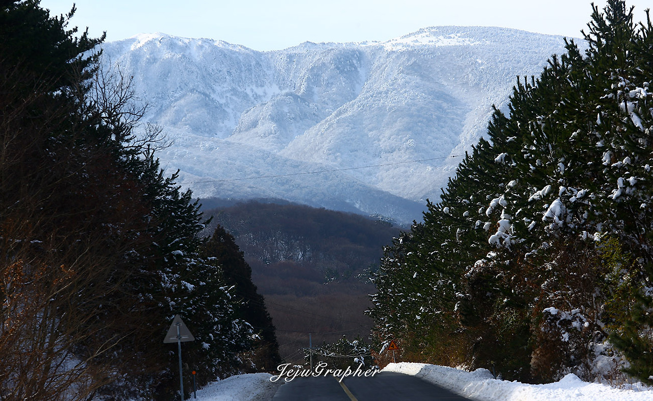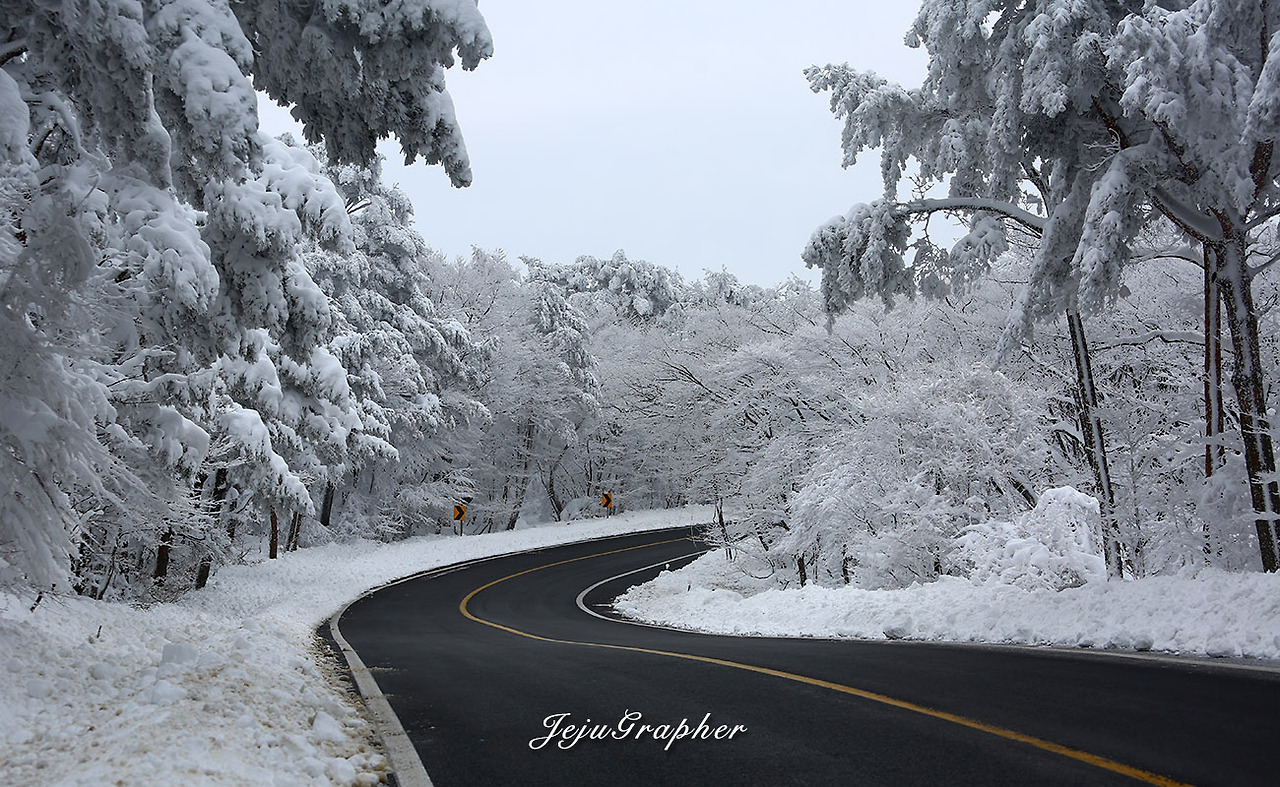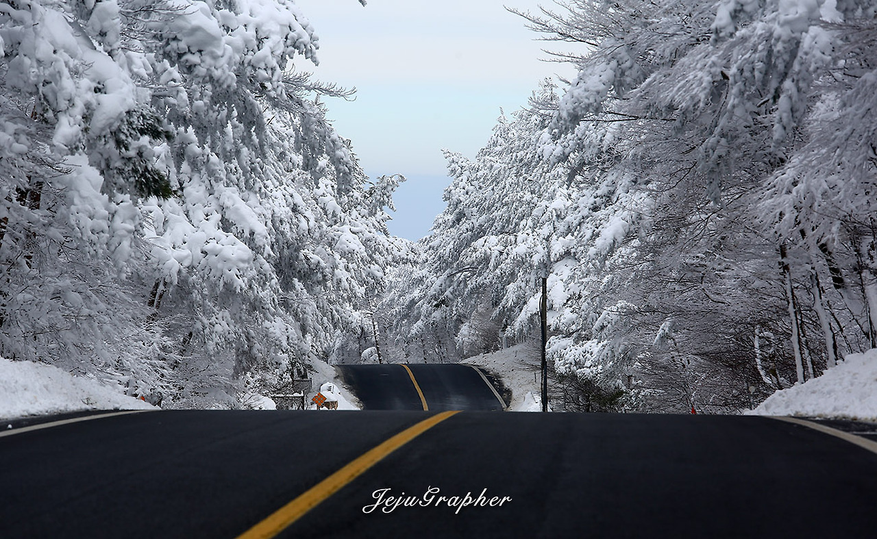 굽이진 이 길을 전부터 걷고 싶었지만 평소에는 차가 많이 다녀서 갓길로 걷는 것이 위험합니다. 하지만 이렇게 어리목 근교부터 차량이 정체돼서 평소보다 지나는 차량이 적습니다. 그리고 영하 2~3도로 엄청 추운 상태가 아니어서 산책하는데 큰 어려움이 없었습니다.