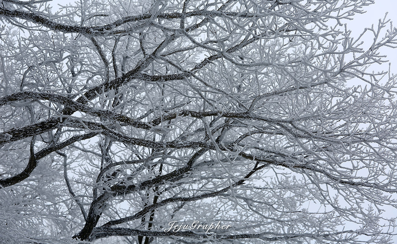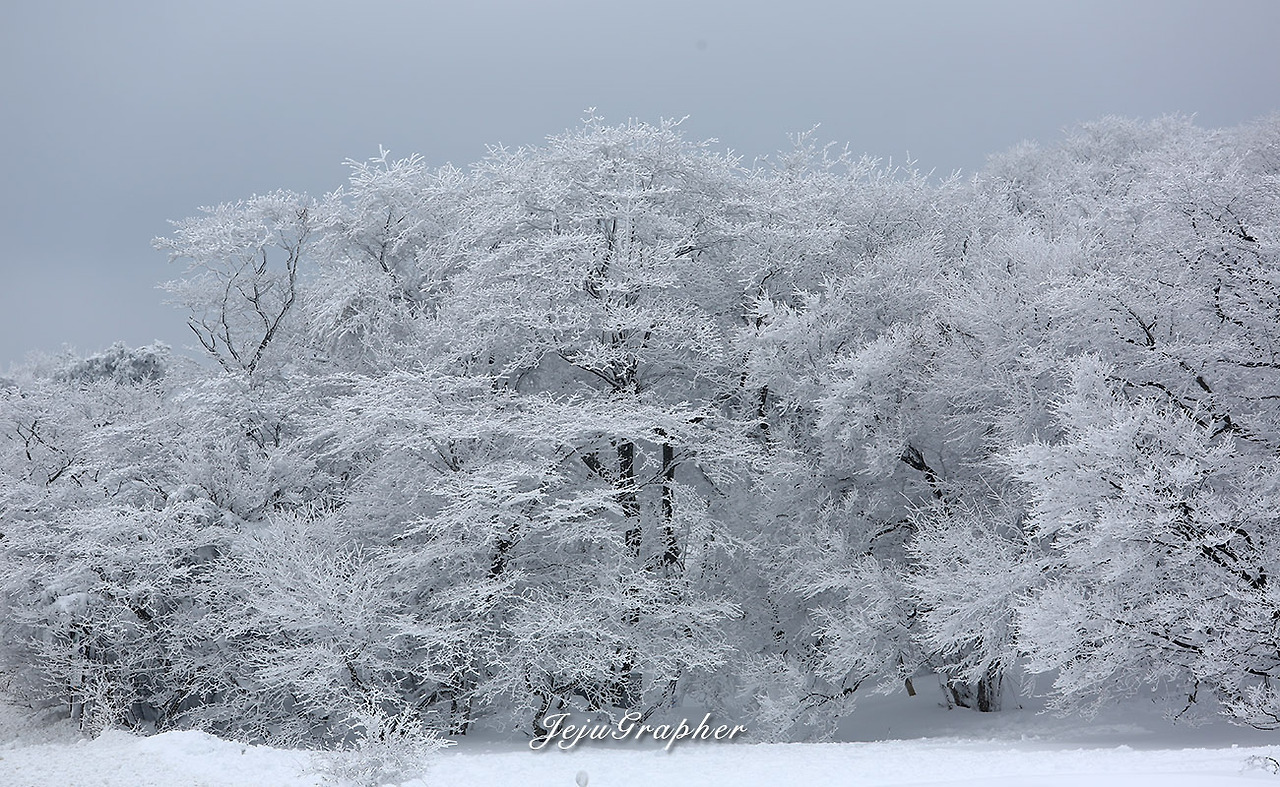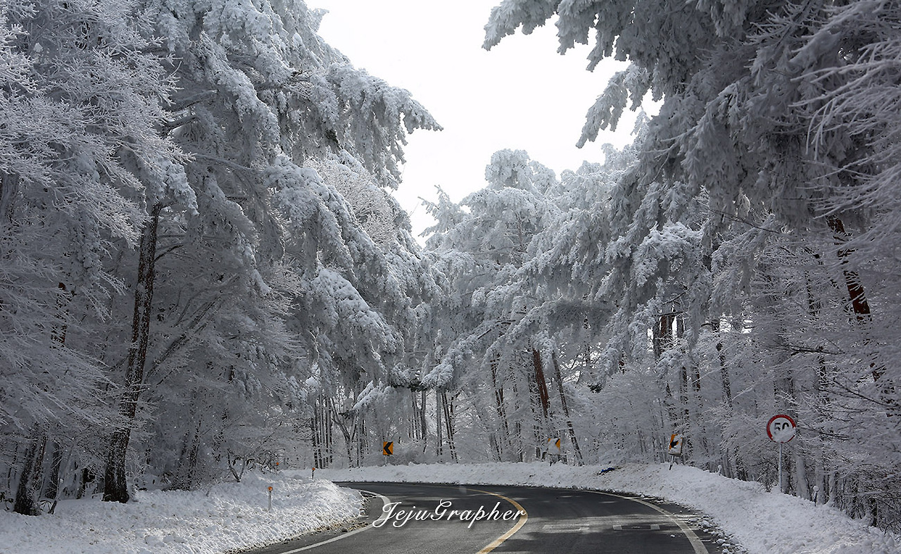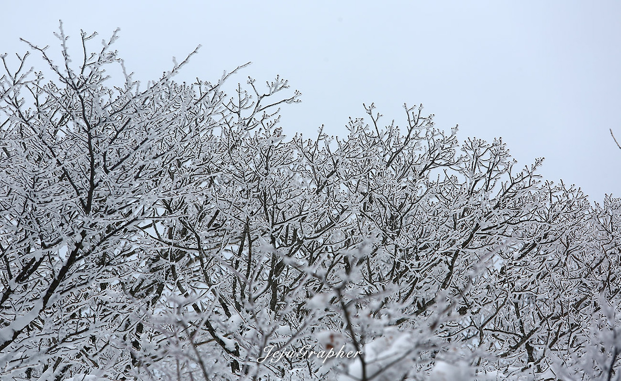 바로 이틀 전에 18km 눈길을 걷는 강행군을 했는데 (https://brunch.co.kr/@jejugrapher/185), 지금 1100고지에 올라가면 멋진 상고대를 볼 수 있다는 생각을 하니 또 몸이 반응합니다. 좀 피곤하더라도 지금 아니면 또 신기루처럼 사라질 상고대기에 사람들이 붐비기 전에 나가보기로 합니다. 이미 여러 차례에 걸쳐서 1100고지 및 상고대에 관한 글/사진을 올렸기 때문에 긴 설명은 생략합니다.