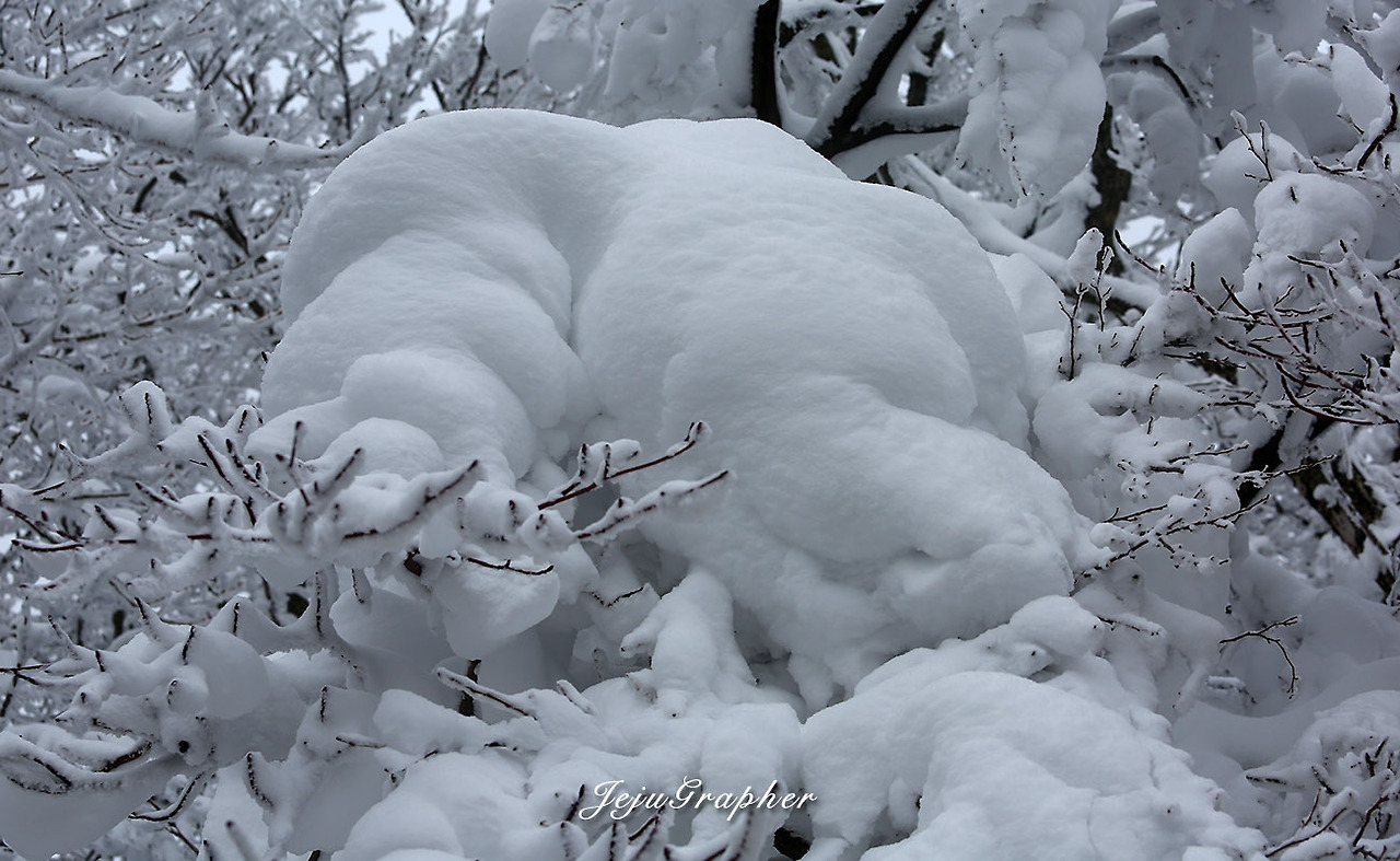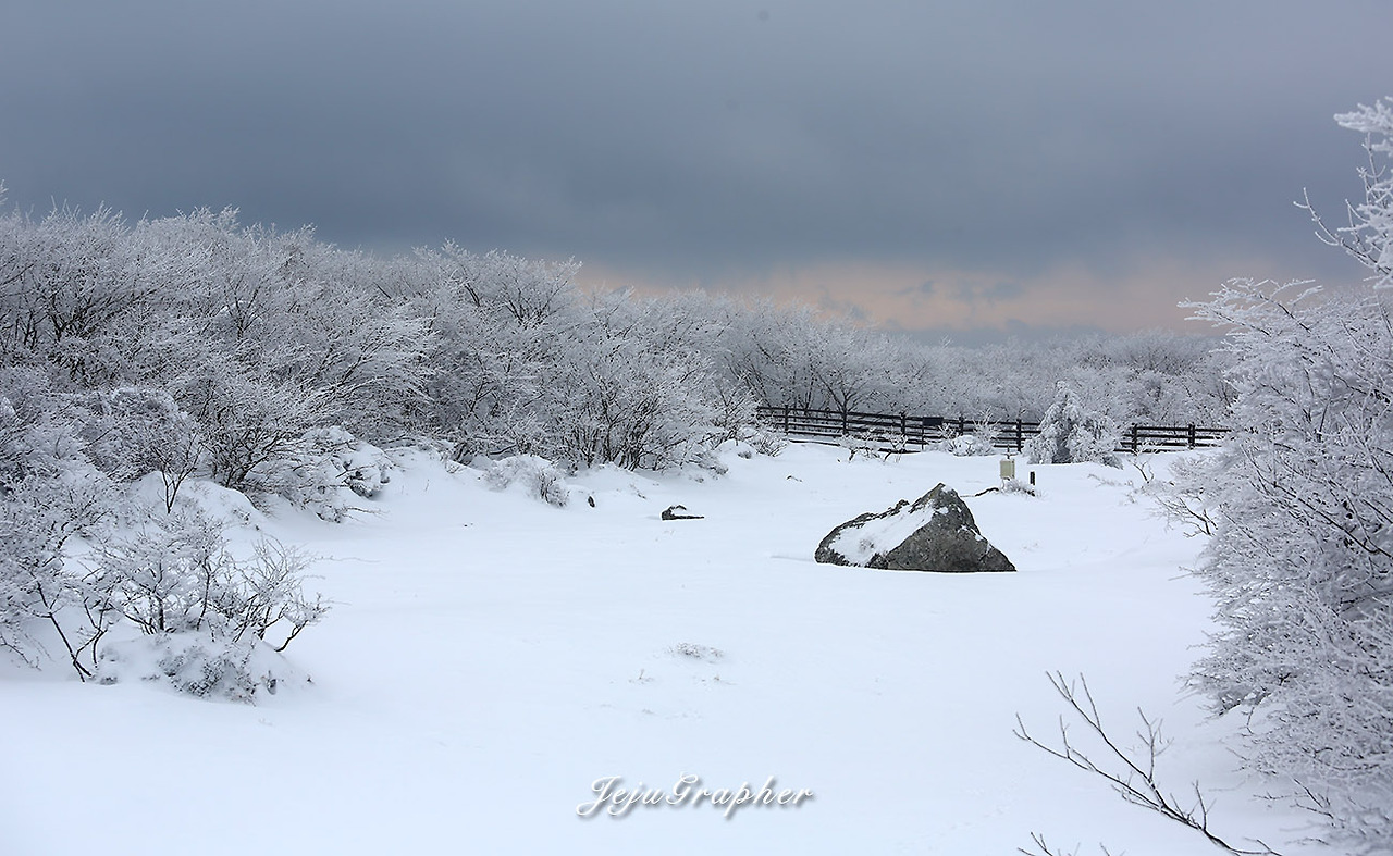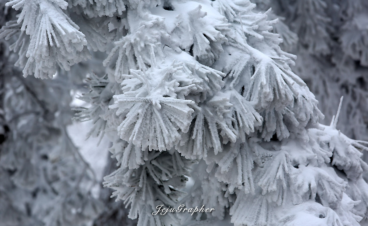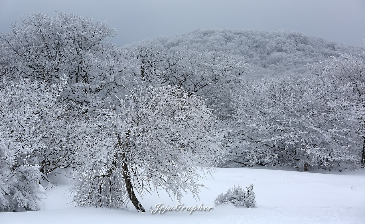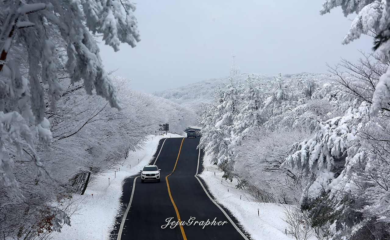 바로 이틀 전에 18km 눈길을 걷는 강행군을 했는데 (https://brunch.co.kr/@jejugrapher/185), 지금 1100고지에 올라가면 멋진 상고대를 볼 수 있다는 생각을 하니 또 몸이 반응합니다. 좀 피곤하더라도 지금 아니면 또 신기루처럼 사라질 상고대기에 사람들이 붐비기 전에 나가보기로 합니다. 이미 여러 차례에 걸쳐서 1100고지 및 상고대에 관한 글/사진을 올렸기 때문에 긴 설명은 생략합니다.