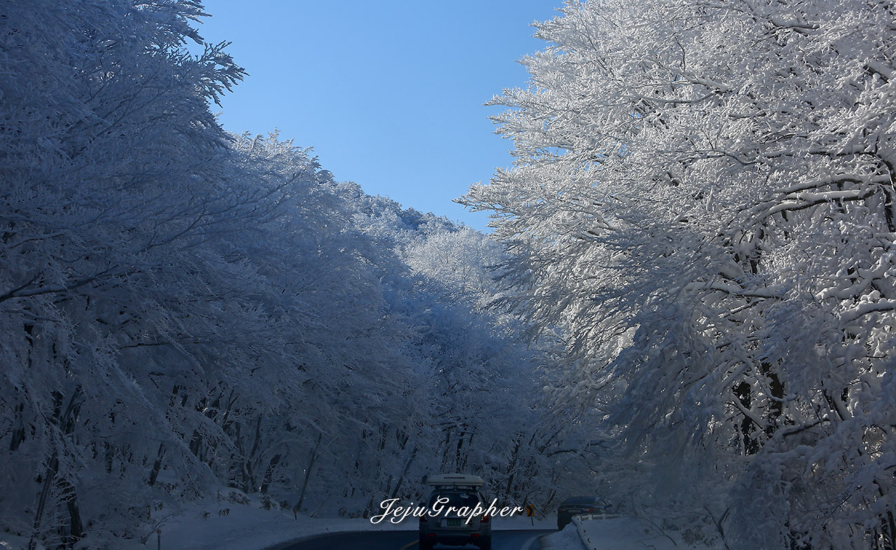 길을 가다 보니 1100도로 통제가 끝나서 우발적으로 일단 1100도로로 방향을 틀었습니다. 겨울에 1100도로/고지를 많이 갔지만 가장 아름다웠던 날로 기억될 듯합니다. 하지만 역설적이게도 이번에는 사진을 제대로 찍지 않았습니다. 평소에 정차하던 장소에 이미 많은 차들을 세워놔서 아쉽지만 그냥 눈으로 감상하는 걸로 만족하기로 했습니다.