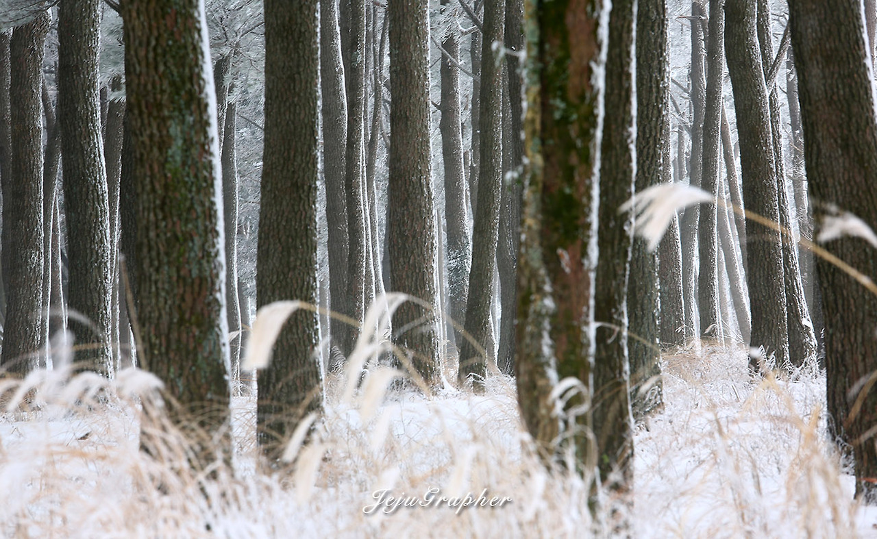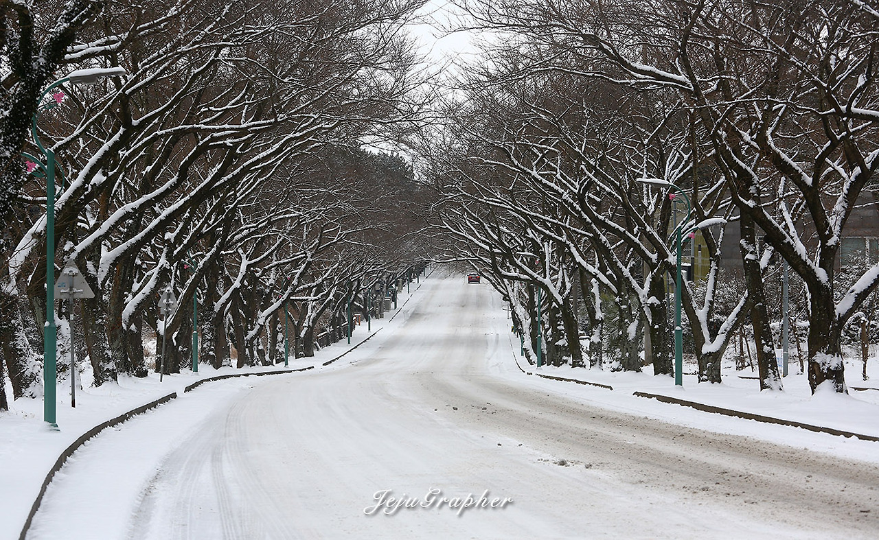 날씨도 매우 춥고 눈도 생각보다 많이 내린 것 같지가 않아서 그냥 따뜻한 방에서 잠이나 잘까라는 생각도 들었지만 (그리고 너무 많이 돌아다니면 어쩌면 갈지도 모를 주말 등산이 불가능해집니다), 눈 오는 제주를 경험하고 사진을 찍겠노라고 판교로의 이사도 미뤘는데 방에만 있을 수가 없었습니다. 지난 두 번의 눈길 트래킹은 단순히 516도로를 따라서 비자림로까지를 왕복했던 거라서 그냥 집 주변의 소소한 풍경을 담을 생각이었습니다.