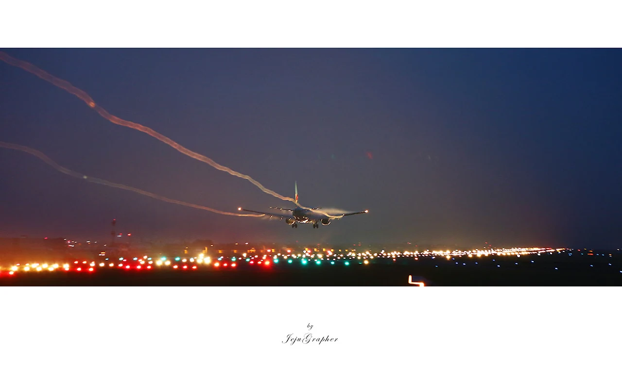 정확히 언제인지 기억나지 않지만, 10여년 전에 SLR클럽에 비행기 궤적 사진이 올라온 것을 본 후로 언젠가 한 번 찍어봐야겠다고 마음을 먹었습니다. 하지만 비행기 궤적 사진은 공항 근처에서만 가능합니다. 포항에도 공항이 있었지만, 공항 활주로를 제대로 조망할 수가 없었고, 사진 한장을 찍겠다고 대구나 부산 등으로 갈 수도 없는 노릇이었습니다. 그러던 중에 제주로 내려왔습니다. 한동안 사진에 대한 열정이 식어있다가 최근 2년동안 열심히 찍고 있고, 제주공항에서 어쩌면 비행기 이륙 또는 착륙시의 궤적 사진을 찍을 수 있을 것같다는 막연한 기대감을 가지고 있었습니다. 작년 이 맘 때 즈음 적당한 장소를 찾아냈는데, 여지껏 실행하지 못하다가 지난 주말에 대구에 다녀오는 길에 시간이 남아서 궤적 사진에 도전해봤습니다.