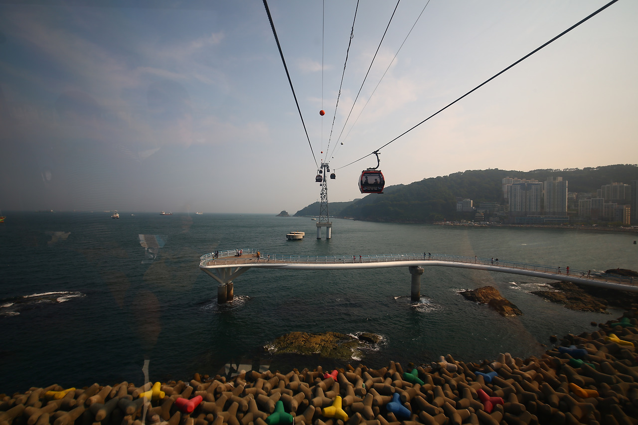 조금 늦은 시간에 부산역에 도착했기에 근처 식당에서 밀면으로 허기를 때우고 바로 송도로 향했습니다. 일행 중 일부는 광안리 숙소에 짐을 놓고 왔지만, 저는 카메라 가방을 어차피 들고 다녀야 했기에 그냥 마음 맞는 몇 명과 바로 송도로 향했습니다. 숙소에 갔던 일행들이 올 때까지 주변을 둘러볼 여유가 좀 있었습니다. 모두 모여서 인터넷으로 애매해뒀던 케이블카를 탔습니다. 왕복 2만 원인 유리 바닥의 투명 케이블카를 이용했습니다. (인터넷으로 미리 구매해서 1.9만 원. 불투명은 왕복 1.5만 원. 편도 가능) 특별히 고소공포증이 없다면 투명 케이블카를 추천합니다. 아주 긴 구간은 아니지만 여행 왔으면 한번 타볼 만하다는 평이 주를 이뤘습니다.