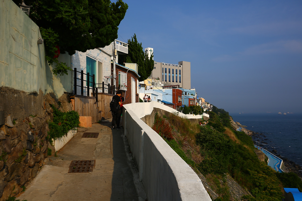 케이블카를 다시 타고 내려와서 아직 저녁 먹기에는 이른 시간이라 건너편 영도로 향했습니다. 최근 영화의 배경이 되기도 했고 유명 가수가 자란 곳이라 인기를 얻는 흰여울길로 갔습니다. 흰여울길도 좀 아이러니한 공간이었습니다. 분명 낙후한 동네인데 젊은이들이 찾는 명소가 됐다는 점, 이 지역과 어울릴 듯 아닌 듯한 카페들이 우후죽순 들어오는 점은 제주에서 느꼈던 그 기분을 다시 느끼게 합니다. 송도에서처럼 중국인 관광객이 많다는 점도 데자뷔처럼...