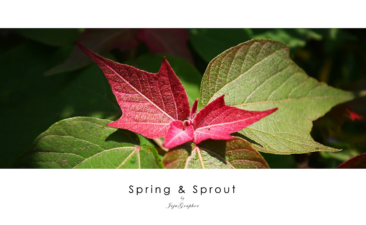제주에 처음 내려와서 많은 것들이 신기했지만, 특히 신기했던 것 중에 하나가 나무들이었다. 나름 농촌 시골에서 태어나 자랐고, 고향집이 나무 묘목으로 특화된 지역이서 나무에 대해서 많이 안다고 생각했지만, 제주에는 육지에서 볼 수 없었던 여러 나무들이 있었다. 그냥 나무 또는 나뭇잎 생김새도 특이했지만, 특히 특이한 점은 봄에 새순이 돋을 때였다. 보통의 새순이라면 연녹색을 띄기 마련인데... (참고로, 아래에 소개할 나무들은 대부분 이름을 모릅니다.ㅠㅠ)