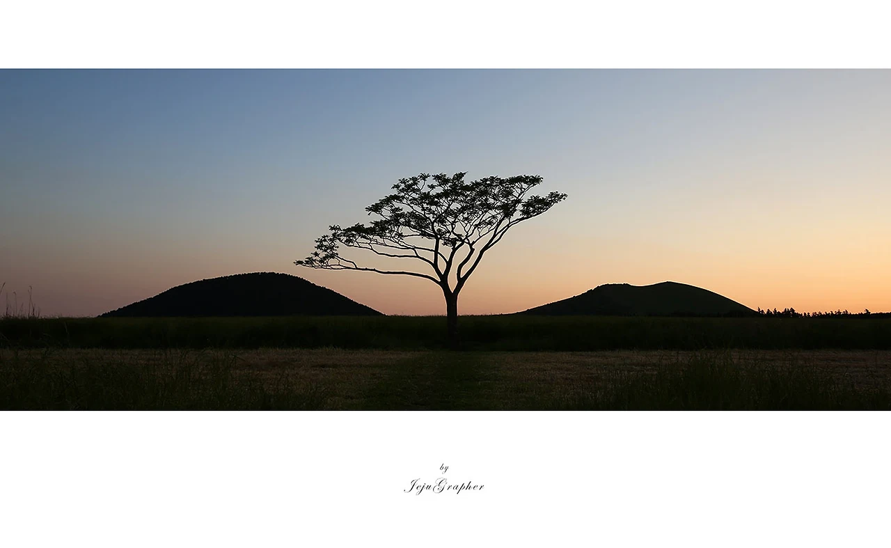 그리고 첫번째 의문으로 돌아가서... 그렇습니다. 처음 나홀로나무의 존재를 알고 나서는 거의 매주 찾아가서 사진을 찍었습니다. 날씨가 흐린 날도 있었고 화창한 날도 있고 구름이 낀 날도 있었지만, 사진의 기본은 이달봉과 새별오름 그리고 나홀로나무의 구성에서 크게 벗어나지 않았습니다. 그러 던 중 누군가가 여름 새벽에 찍어놓은 나홀로나무를 우연히 봤습니다. 그 사진을 보는 순간 매료됐습니다. 아직은 그 사진과 같이 새벽 별을 담은 나홀로나무를 사진으로 남기지는 못했지만 (도전은 했지만, 제대로 된 사진을 남기지 못함) 다양한 상황의 나홀로나무를 사진으로 남기기 시작했습니다. 칠흙같이 어두운 밤에 나홀로나무 실루엣을 찍으러도 가봤고, 폭설이 내린 설원의 나홀로나무도 찍었고, 짙은 안개에 쌓여 오름마저 외면한 나홀로나무도 사진으로 남겼습니다. 그런 다양한 상황의 나홀로나무를 모두 봤다면 참 매력적인 사진 장소라는 걸 깨닫게 될 것입니다.