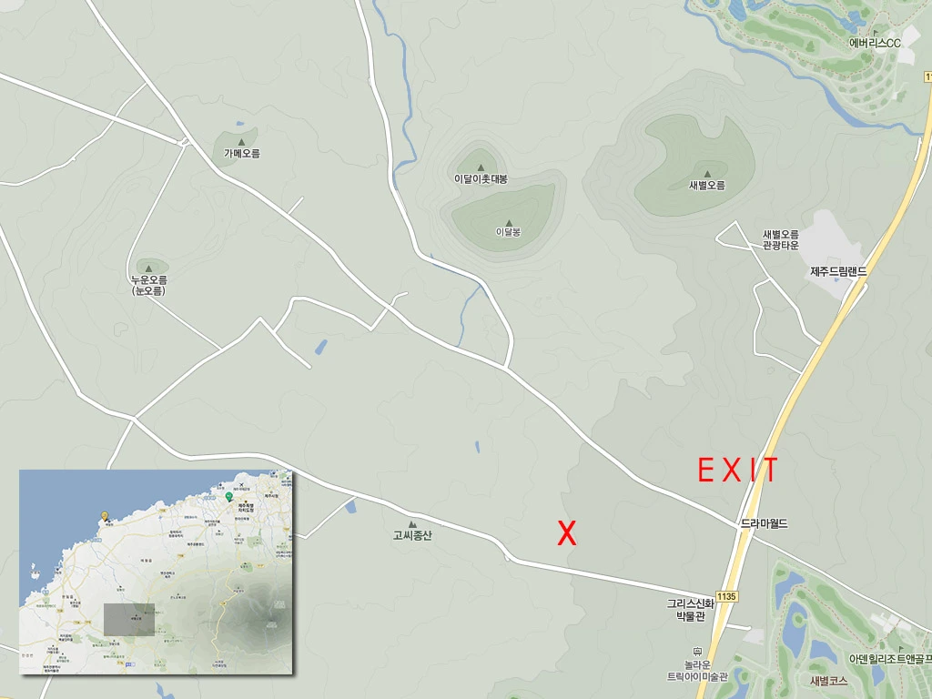 '새별오름 나홀로나무’로 알려져서 새별오름 바로 옆/주변에 있는 것으로 착각할 수 있는데, 실제 직선거리로 새별오름에서 1~2km 떨어진 곳에 위치해있습니다. 정확한 위치는 아래의 지도에 표시돼있지만, 제주에서 평화로를 타고 가다가 새별오름 다음 출구 (애월 봉성으로 연결된 출구, EXIT)로 빠져나와서, 봉성으로 내려가지 않고 평화로 옆 샛길로 조금 더 가면 그리스신화박물관이 있습니다. 그리스신화박물관 앞 길로 약 6~700m 더 내려가면 오른쪽 목초지 한 가운데 나무 한 그루가 외로이 서있습니다. (아래 지도에서 X 표시된 곳) 멀리 뒤로 오른쪽으로는 새별오름이 있고 왼편으로는 이달봉이 있습니다. 그래서 새별오름과 이달봉 사이에 놓인 나홀로나무를 사진에 많이 담습니다.
