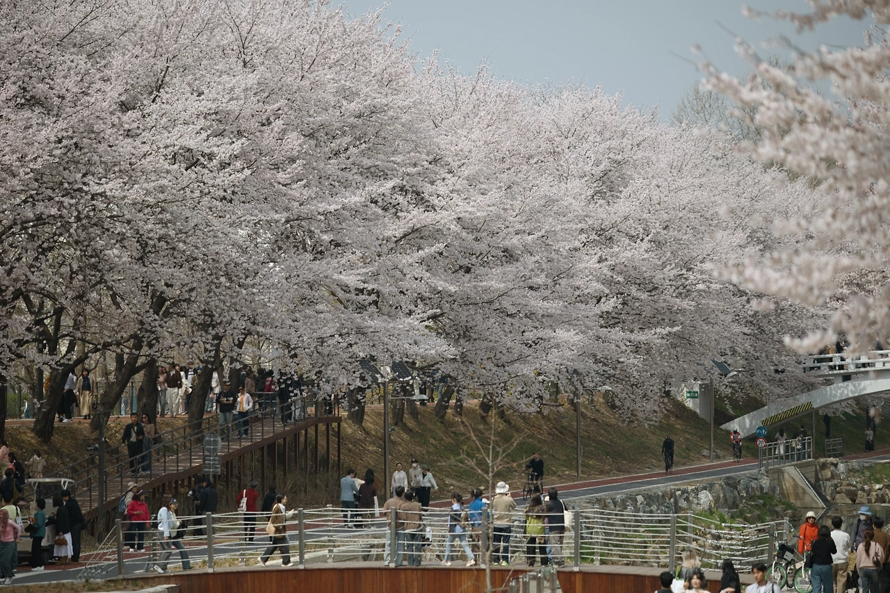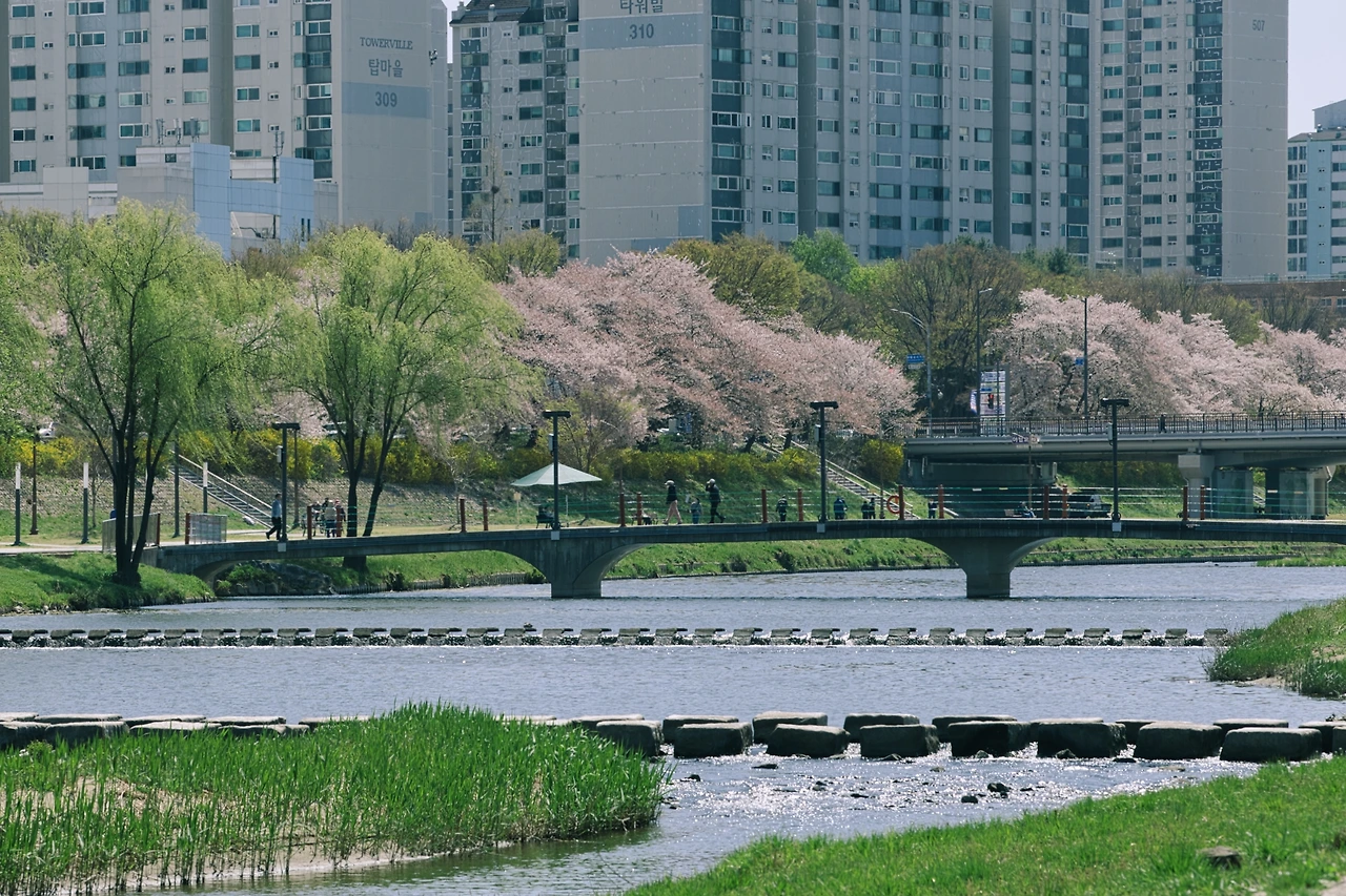 전쟁 여파로 기름값이 올라서 자동차로 이동하는 것이 주저된다. 나들이 한 번에 기름값이 얼마나 들어가겠냐만은 사실상 은퇴한 지금 남의 돈으로 살 때처럼 소비할 수가 없다. 그래서 이동이 망설여진다. 인스타에 올라온 성남의 수정공원은 집에서 버스로 가기에 적당해 보였고 또 탄천을 따라 판교까지 걸으면 좋겠다는 생각이 들었다. 320번 버스를 타고 모란역으로 가서 수정공원으로 향했지만 공원 위치가 살짝 아쉬워서 그냥 바로 탄천으로 방향을 돌렸다. 판교의 벚꽃은 광주보다 조금 빨랐다. 주말의 비 때문인지 지난밤의 바람 때문인지 이미 반정도는 낙화한 뒤였다. 어쨌든 탄천을 따라 판교까지 걸었다. 옛 동료에게 점심을 사달라고 톡을 보냈지만 답장을 받지 못하고ㅠㅠ 이제 나의 영양가/영향가가 다 떨어졌나 보다.