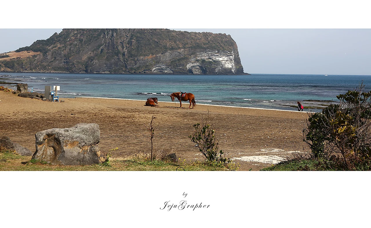 관광객들은 성산일출봉 때문에 성산을 찾겠지만 나는 광치기해변 때문에 성산을 찾는다. 성산일출봉을 오르는 것보다 옆에서 그 모습을 보는 것이 더 좋다. 처음 제주를 찾았다면 일출봉을 오르는 것도 나쁘진 않지만... 지금은 한라산을 비롯해서 다른 많은 오름을 오르기 때문에 일출봉을 굳이 오르지 않는다. 마지막으로 올랐던 때가 2009년 가을경으로 기억된다. 해변이지만 해수욕하기에는 적당한 곳은 아니다. 그러니 관광객들에게 덜 알려진 면이 있다.