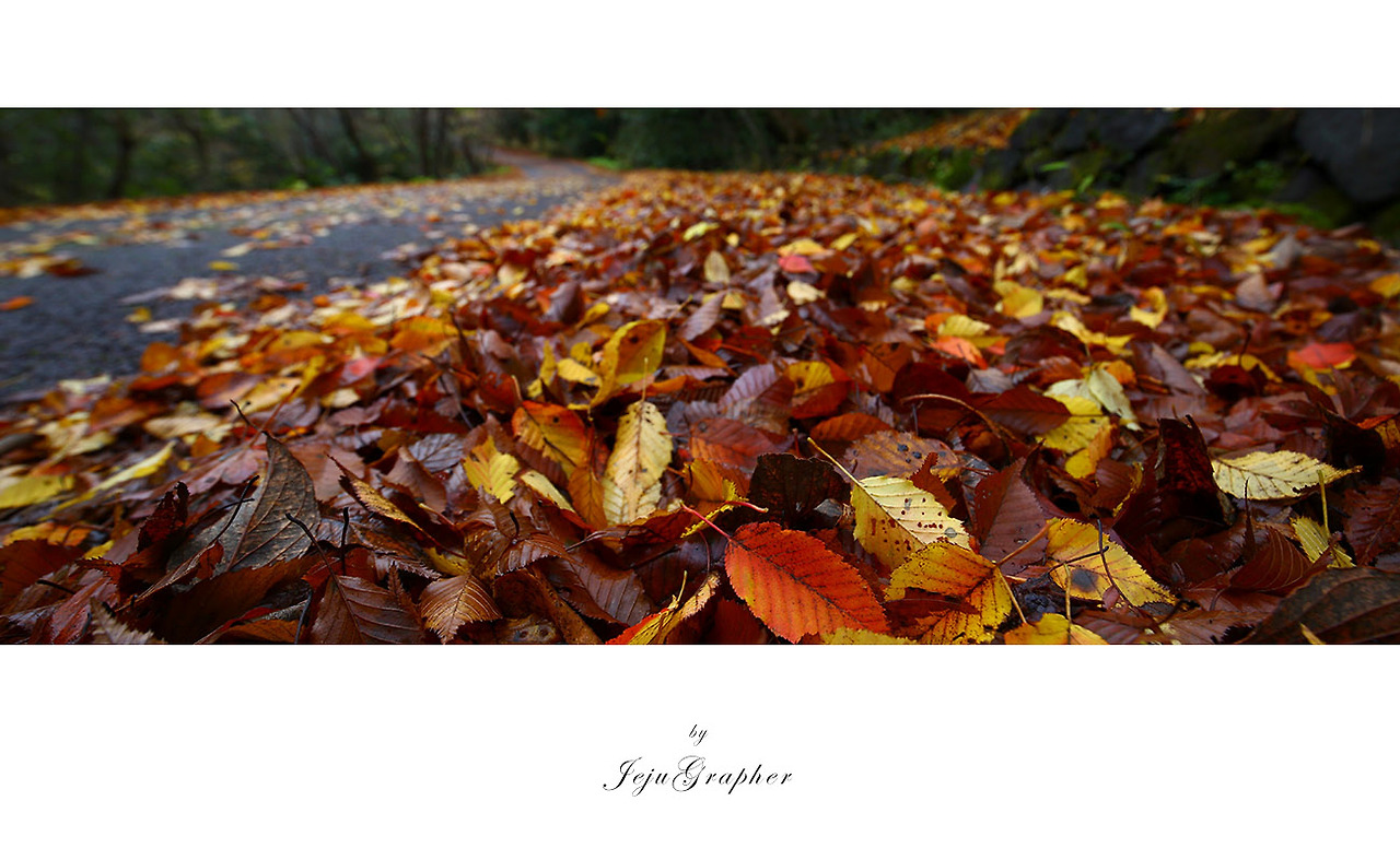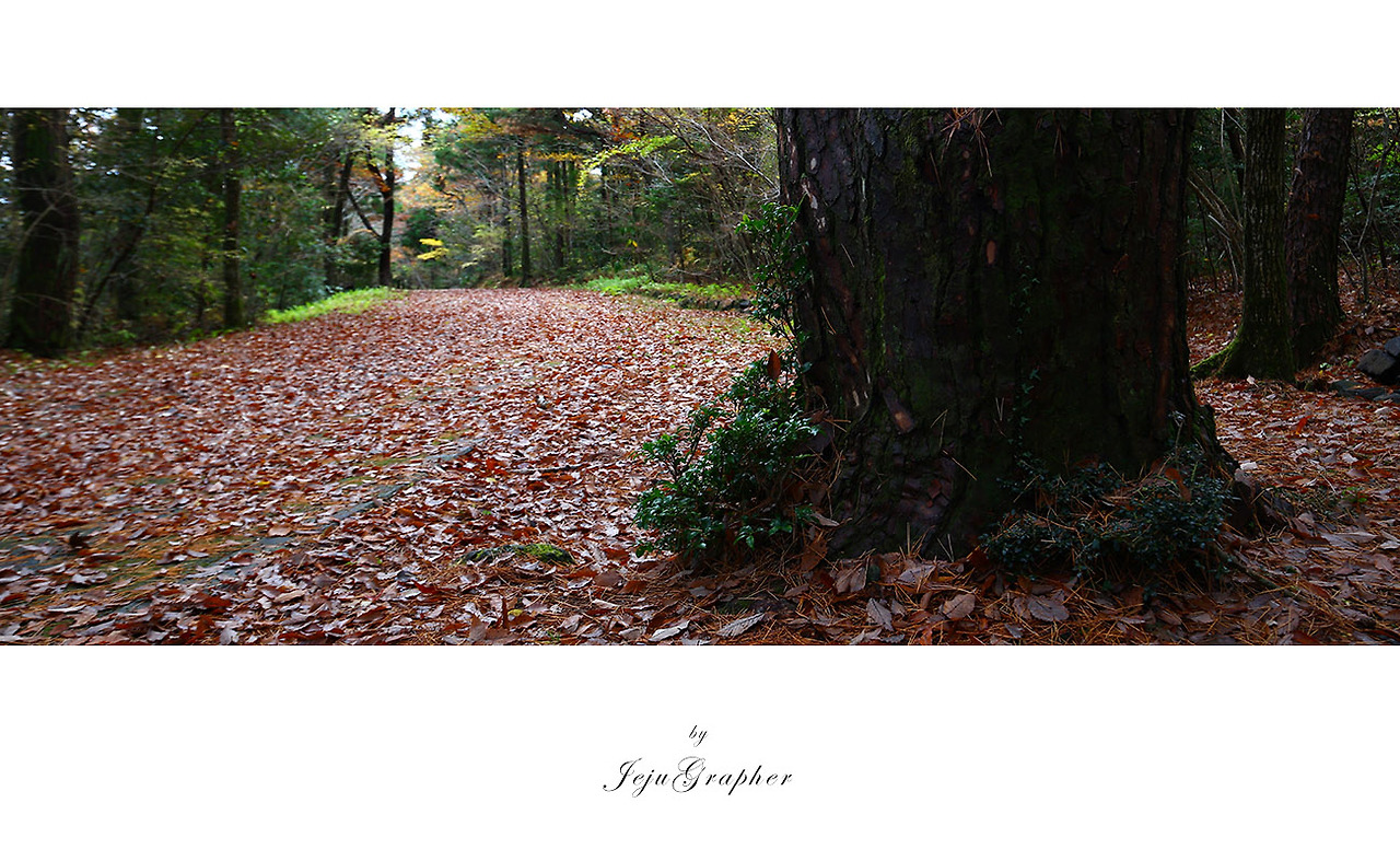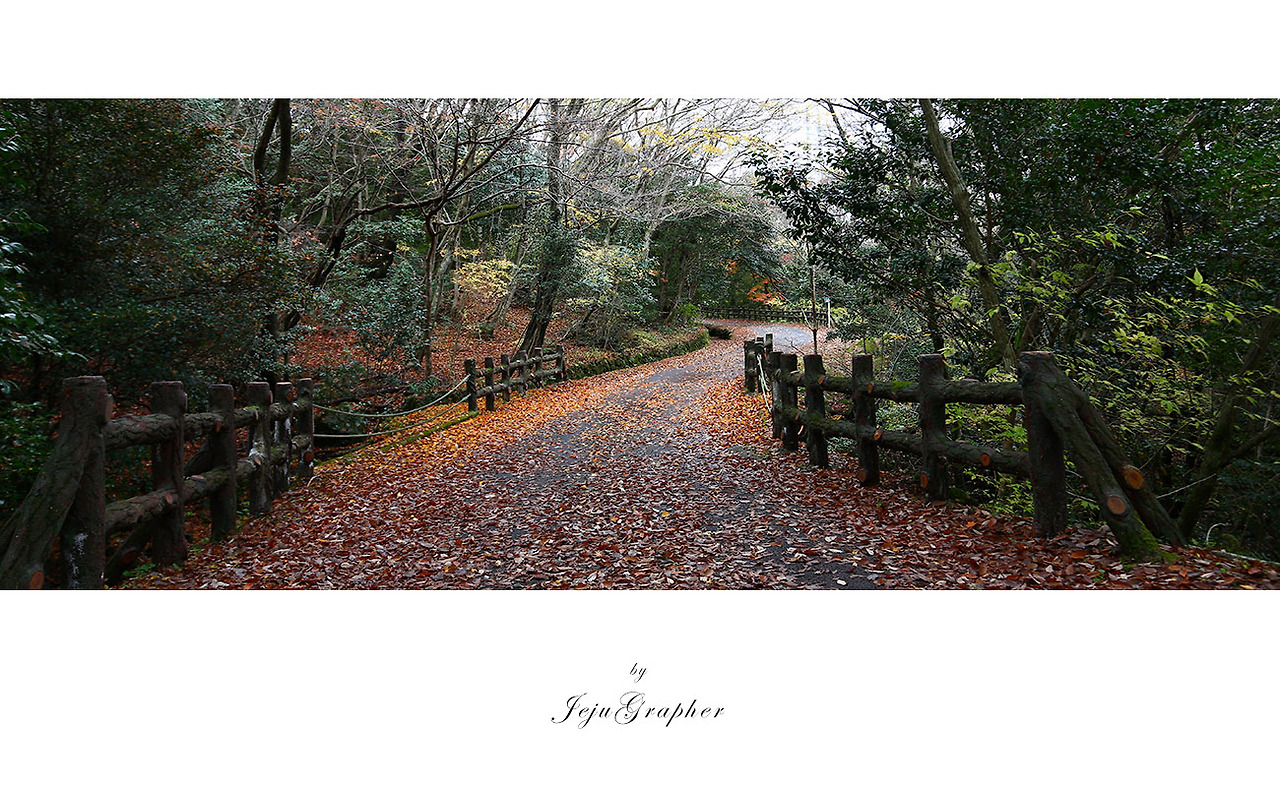입장료는 어른 1,000원, 그리고 중형차 주차료 2,000원. 그렇게 3,000원을 내고 휴양림으로 들어갔습니다. 1100도로를 지나오면서 안개가 짙어서 안개 숲 사진을 기대했는데, 영실 입구 정도에 내려왔을 때 벌써 안개/구름은 온데간데없이 사라져 버렸습니다. 아쉽다! 입구에서 숲길로 들어섰을 때는 그저 또 하나의 숲길을 걷겠구나라고 생각했습니다. 물론 금방 똑같지 않음을 깨달았지만... 늦가을 정취가 그대로 묻어나는 산길과 산책로를 걸으며 내가 이곳을 너무 늦게 찾아왔다는 후회가 밀려듭니다. 몇 년 전에 찾아왔더라면 벌써 여러 번 찾았을 법했고, 특히 1~2주 전에 찾아왔더라면 더 가을가을한 제주의 숲을 느낄 수 있었을 텐데라는 아쉬움도 남습니다. 그러나 그날 오후의 만추가 어쩌면 더 분위기가 맞습니다. 다시 이곳을 찾는다면 봄이나 여름이 아닌 가을을 택할 것이고, 10월 중후반에 찾아오고 11월 중순에 다시 찾을 겁니다.