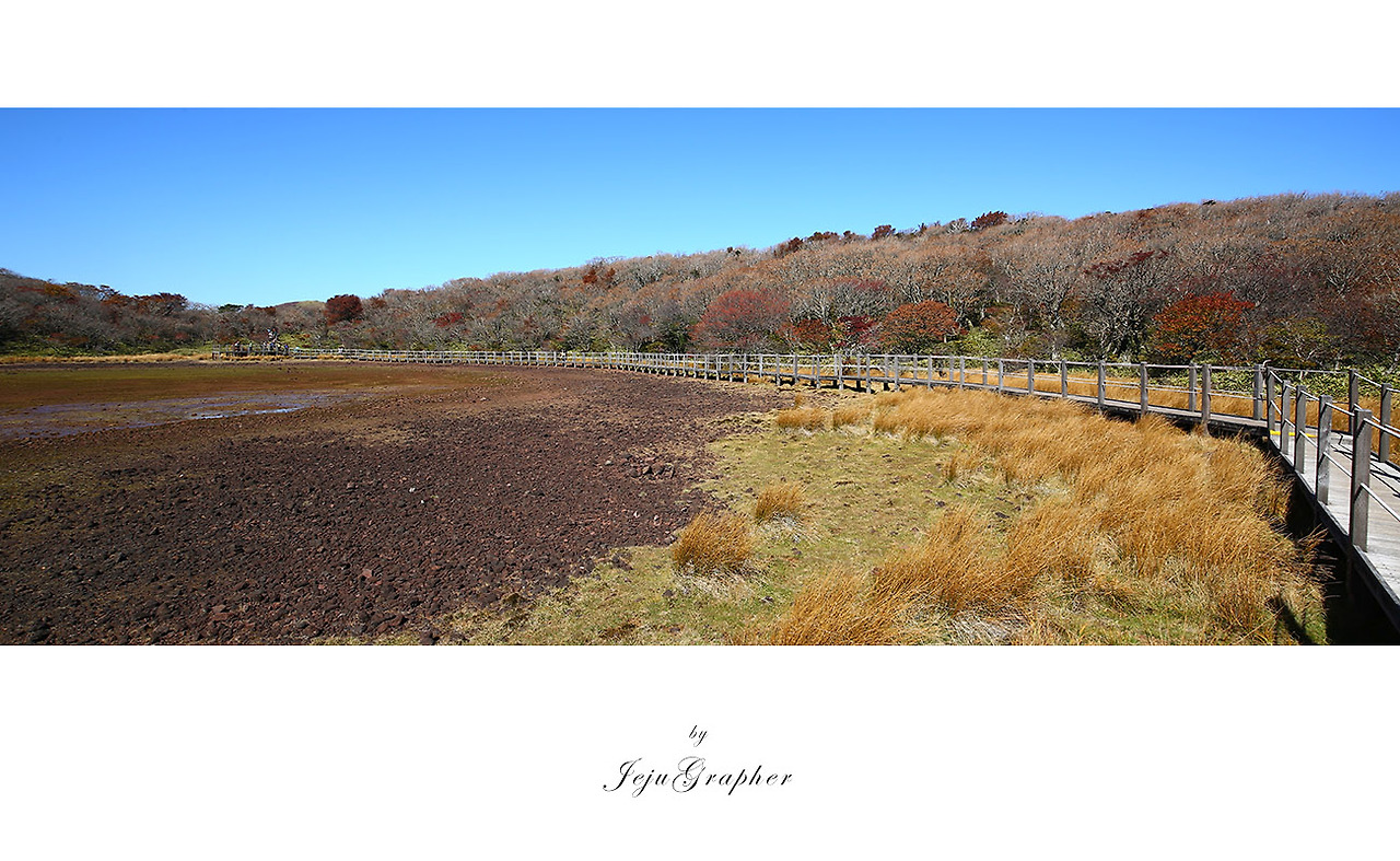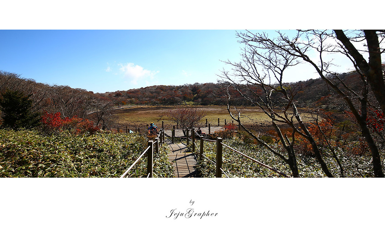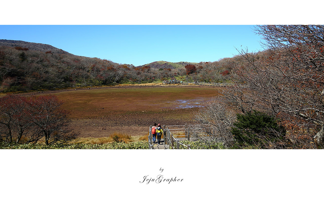 세 번째는 가을 사진을 찍기 위해서 올랐다. 송당리의 어느 식당에서 본 사라오름에서 찍은 가을 사진을 본 후로 가을을 기다렸다. 막상 올랐지만 그 사진을 재현할 수는 없었다. 그리고 일주일 전에 분화구에 물이 가득 차있었는데, 일주일 사이에 호수가 바짝 말랐다. 사라오름 호수가 아니라 가을 한라산을 보기 위해 등산한 것이라고 스스로 위로한다.
