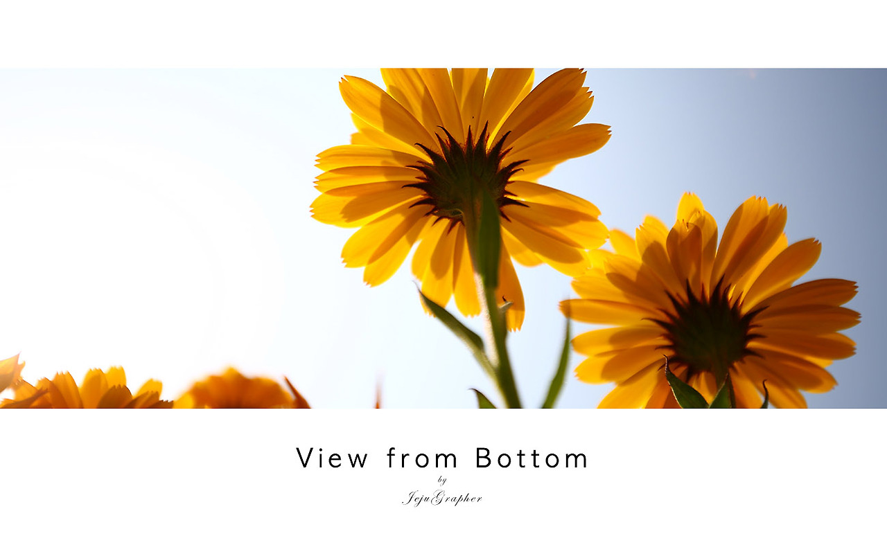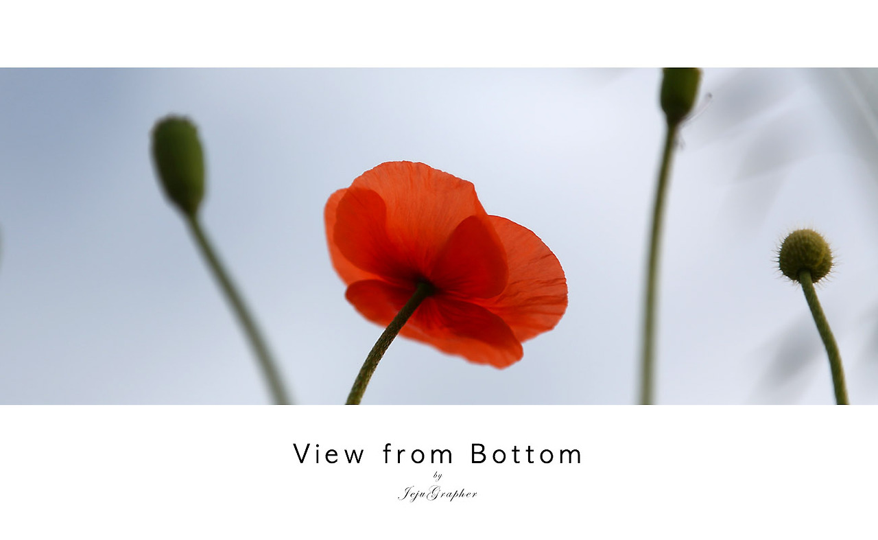 사시사철 다양한 꽃을 보는 것도 제주 생활의 즐거움입니다. 매화, 유채, 벚꽃 등의 봄꽃이 지면 다양한 야생화가 여름을 맞이하고 또 코스모스와 억새 그리고 겨울의 눈꽃까지... 제주는 사계절이 모두 꽃천지입니다. 정면에서 보는 꽃도 예쁘지만 시야를 조금만 낮추면 또 다른 세상이 펼쳐집니다. 그래서 오늘은 아래에서 바라본 꽃 사진 (중간에 나무 사진도 포함)을 모았습니다.