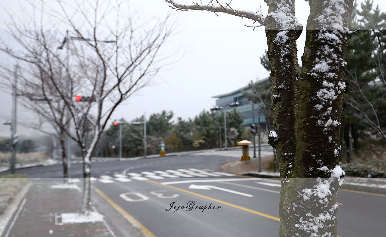 오늘 제주에도 첫눈이 왔습니다. 어제 한라산에는 눈이 내렸고 늦은 밤에 우박이 떨어졌고 또 밤 사이에 한라산에 많은 눈이 쌓였지만, 온전하게 내리는 눈을 볼 수 있었기에 오늘 첫눈이 왔다라고 말해도 됩니다. 오전부터 간간이 눈발이 휘날렸는데, 오후에도 또 한 차례 휘몰아쳐서 사진을 찍었습니다. 눈발이 휘날리는 사진을 찍고 싶었지만 조금 지체하느라 어느 새 눈은 그치고 말았습니다. 그래도 카메라를 끄집어 들었으니 나뭇가지에 쌓인 눈이라도 사진으로 남겼습니다. 카카오스페이스.2 일대의 모습입니다. 밤에도 계속 눈이 온다면 내일은 휴가를 내고 눈 사진을 찍으러 다녔으면 좋겠지만... 이제 시작한 겨울은 길고...