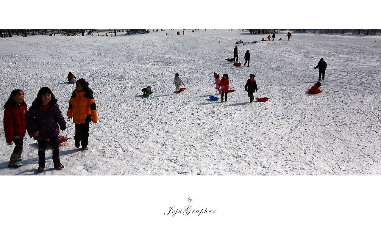 마방목지는 말들의 땅이면서 여행자들의 장소입니다. 그런데 제주 도민들이 마방목지를 찾을 때가 있습니다. 겨울에 눈이 내린 후에는 아이들을 데리고 눈썰매를 타러 옵니다. 스키장이 없는 제주에 눈썰매는 단조로운 겨울 제주의 활력소가 됩니다. 도민들이 좋아하는 눈썰매장 몇 곳이 있지만 마방목지에 가장 많이 몰립니다. 눈썰매장이 생기면 주위에 어묵이나 핫도그를 파는 차량도 오기 때문에 저는 그걸 먹으로 찾아가곤 합니다. 그리고 사진을 좋아하는 분들은 제주시에서 그나마 가장 가깝게 별을 보기에 좋기 때문에 별 사진을 찍기 위해서 찾기도 합니다. 한여름 밤에 더위를 식히러 올라오시는 분들도 계시지만 밤에는 불빛이 없어서 조금 무섭습니다.