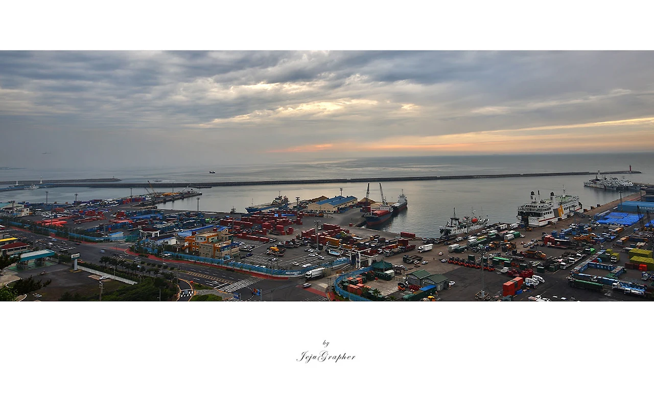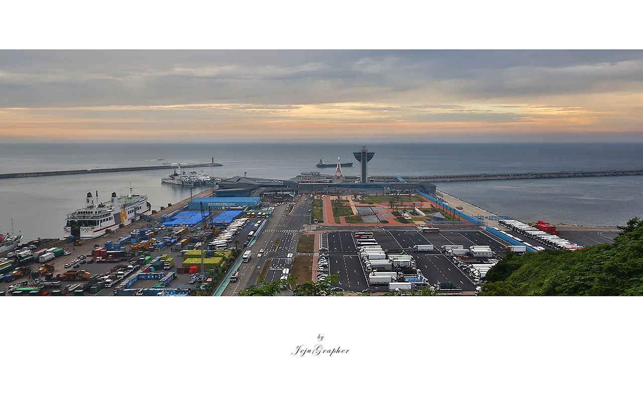 구름이 짙게 낀 날 해질 녘에 HDR 모드로 찍은 제주항입니다. 등대에 도착했을 때 대형 크루즈 선박이 출항하고 있어서, 정박된 크루즈를 사진에 함께 담지 못해서 살짝 아쉽습니다.
