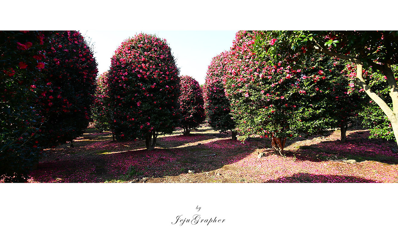 일반인들에게 제주를 연상하는 꽃이 뭐냐고 묻는다면 대부분은 유채꽃이라고 답할 것입니다. 겨울부터 봄까지 제주 곳곳을 노랗게 물드리는 유채는 제주를 상징할만하고, 유채를 보기 위해서 봄에 일부러 제주를 찾는 이들도 있습니다. 그렇지만 저는 동백꽃이라고 답할 것입니다. 모진 눈보라와 추운 겨울바람을 이기고 피어나는 동백이 제주인들의 고단한 삶과 매우 닮았다고 생각합니다. 제주의 곳곳에 핀 동백꽃 사진은 예전에 올렸던 글을 참조하시고 (참고. https://brunch.co.kr/@jejugrapher/20), 오늘은 제주에서 동백 군락을 이루는 곳을 소개합니다. 서귀포 위미리에 위치한 동백군락지와 안덕면에 있는 카멜리아힐입니다.