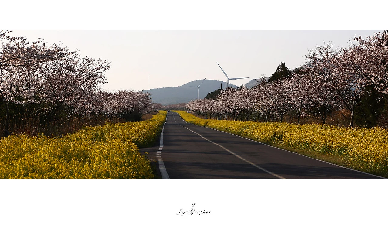녹산로는 제주에서도 드라이브하기에 좋은 길 중에 한 곳입니다. 주변이 아름답기도 하고 지나는 차가 많지가 않습니다. 봄에는 벚꽃과 유채꽃이, 가을에는 코스모스가 길을 따라 활짝 펴있습니다.