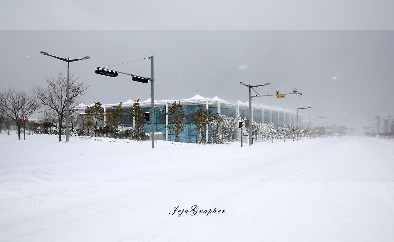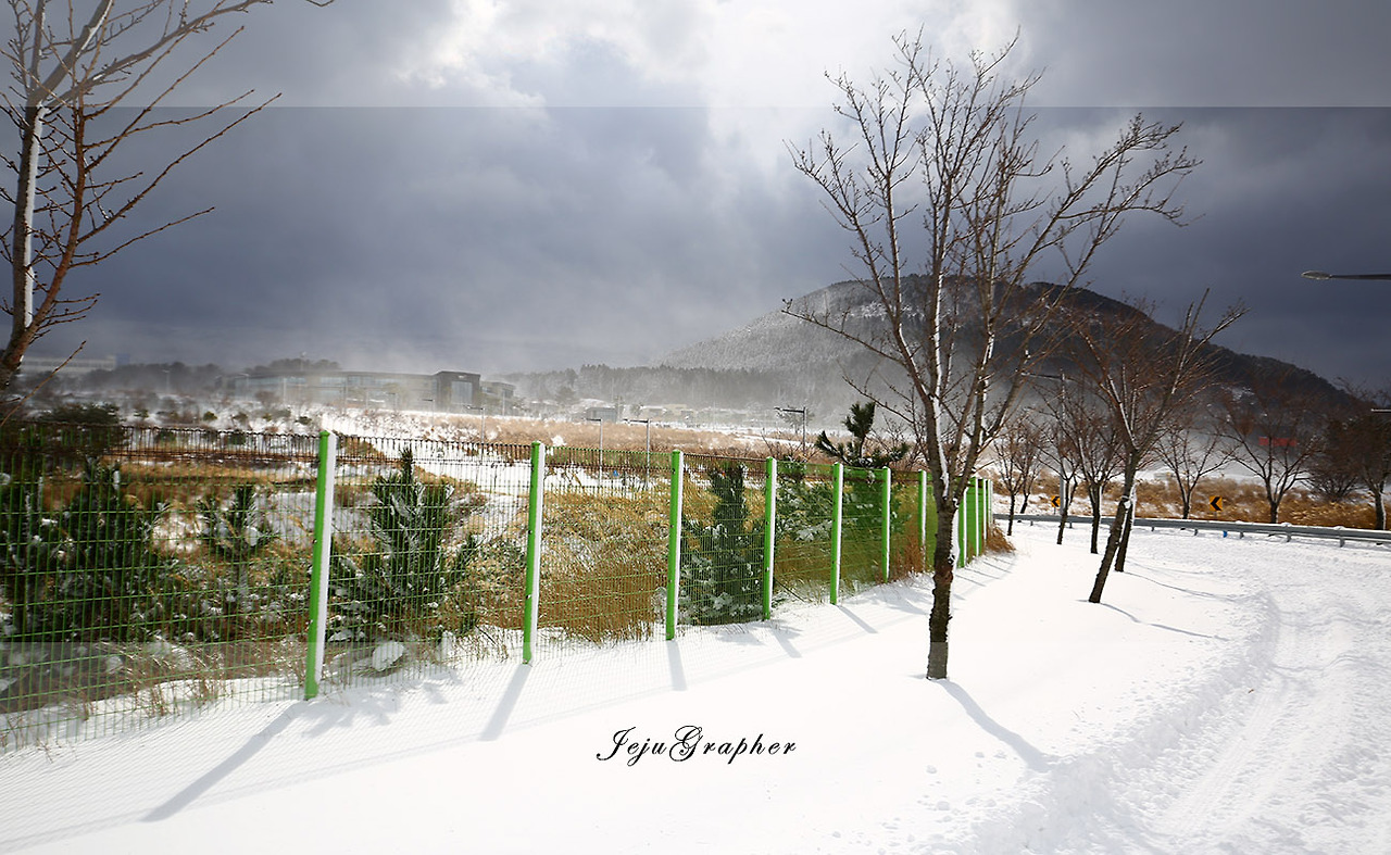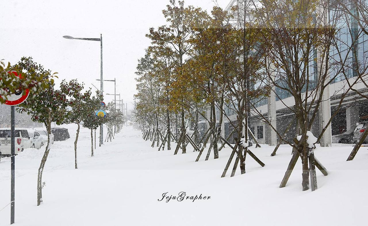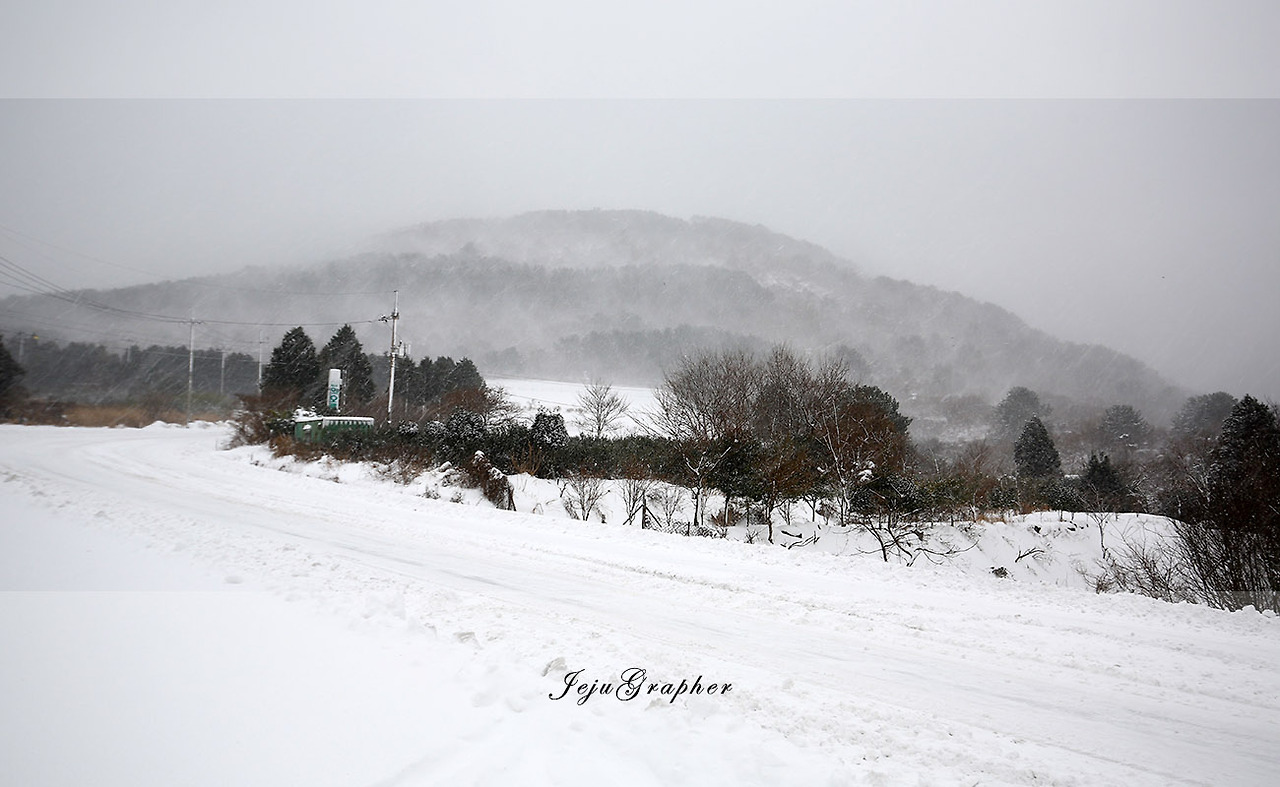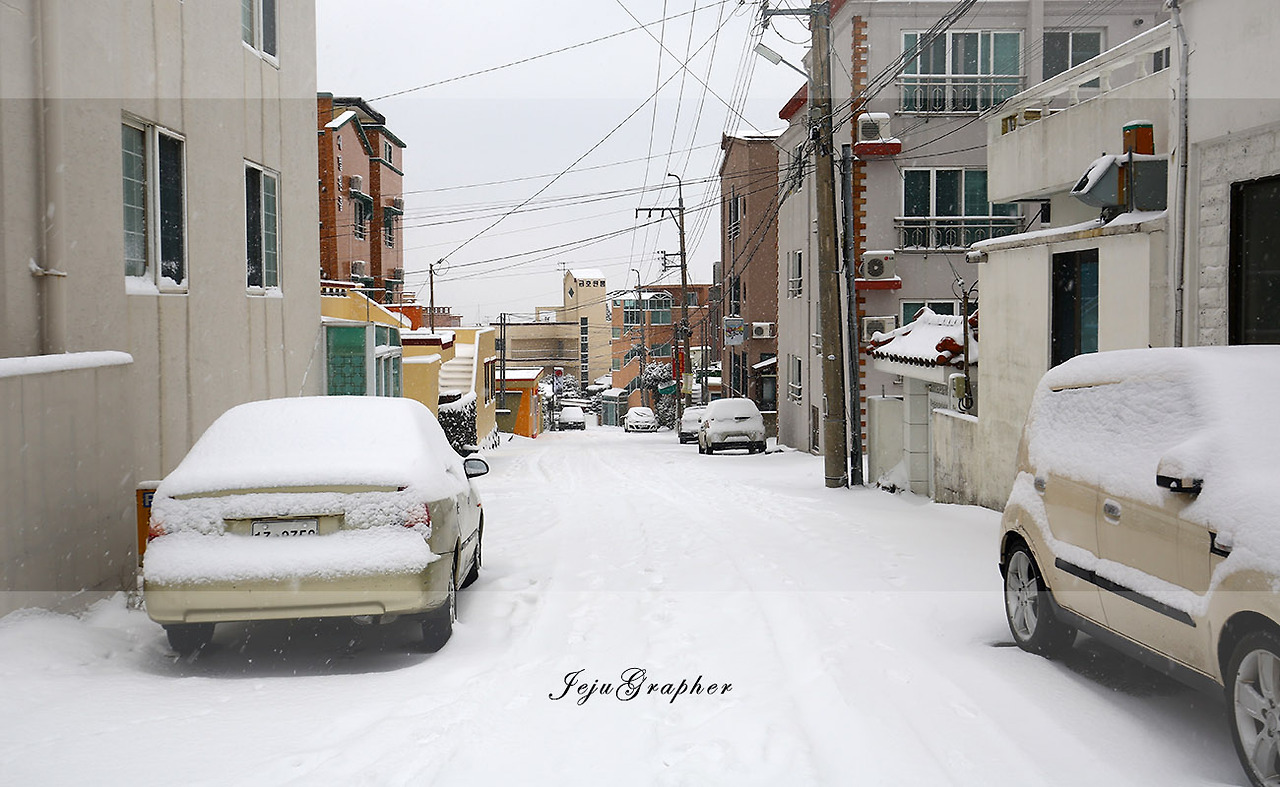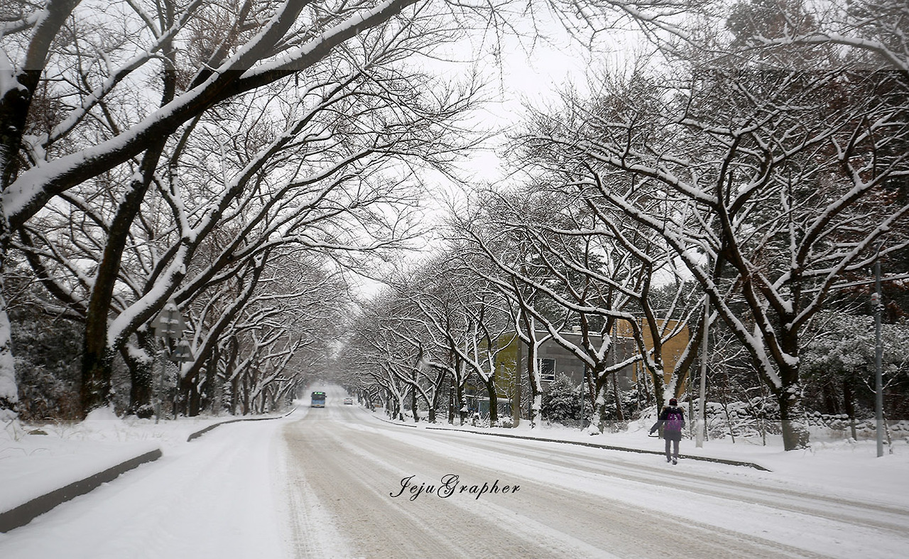 어제는 서쪽을 한 바퀴 돌았으니 오늘은 그냥 동쪽, 회사 쪽으로 가보기로 했다. 이미 눈 온 날 회사까지 걸어가서 다시 제주대학교를 돌아오는 것을 몇 차례 해봤지만 이렇게 눈이 많이 온 날 걸어본 적은 없었다.