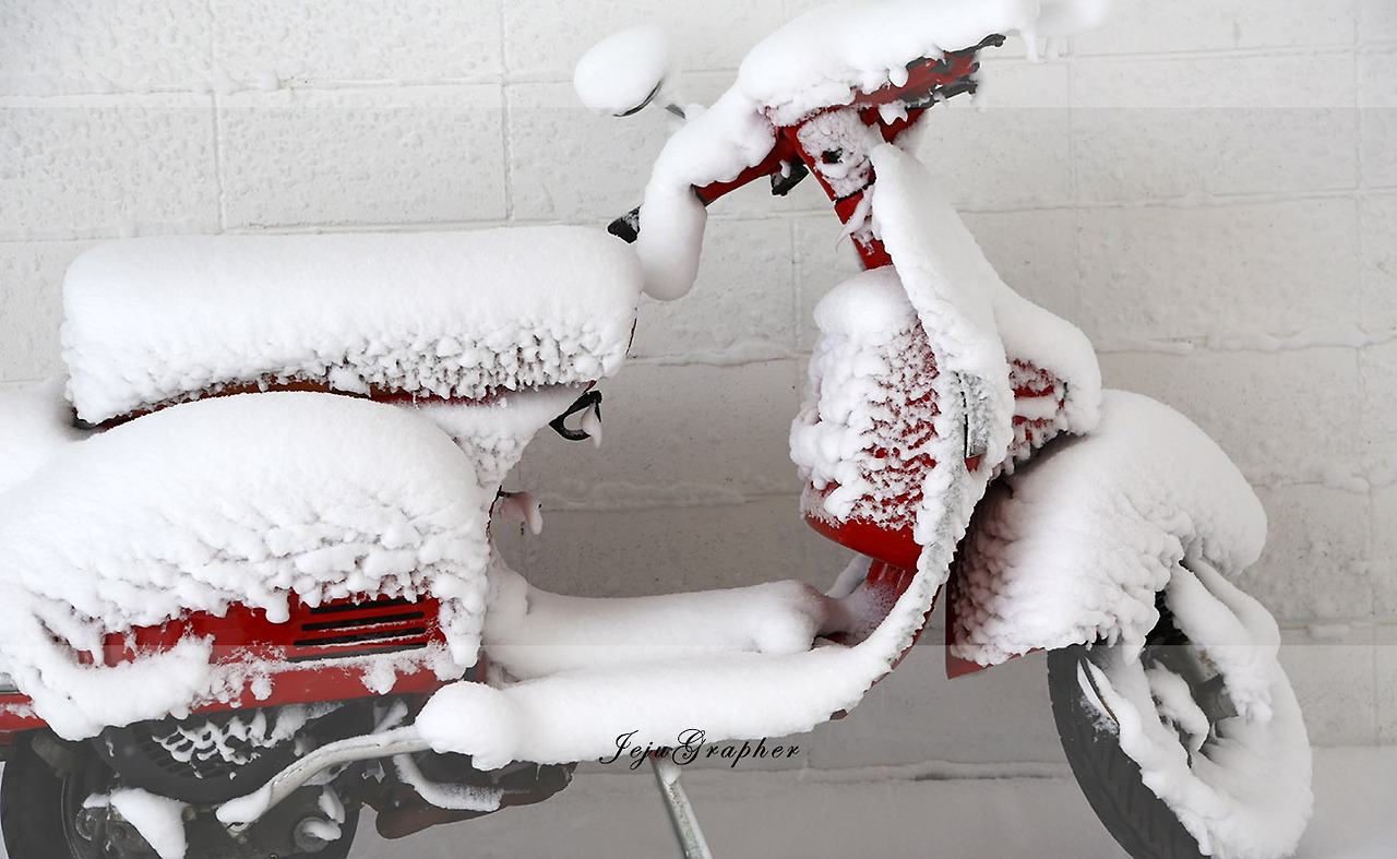 회사 동료들과 오후에 서귀포로 넘어가서 과메기 파티를 하기로 약속이 잡혔다. 한파와 함께 늦은 오후부터 눈이 시작된다고 예고됐지만 일단 약속은 잡았다. 토요일 아침에 여유롭게 일어났는데 10시 경에 급한 카톡 메시지가 날아왔다. '오늘 힘들겠죠? 눈 엄청 쌓였던데.' 그냥 예정보다 빨리 눈발이 날리나 보다 싶었다. 그래서 창문을 열어봤는데... 머리를 최대한 빨리 굴리기 시작했다. 고립을 예상하고 먹을거리는 미리 사뒀지만 뭘 하고 보낼지는 계획이 없었다. 그래서 그냥 중무장을 하고 주변을 걷고 사진을 찍기로 했다. 그리고, 첫날의 패착은 스패츠를 착용하지 않았다는 점이다. 등산도 아닌데 스패츠를 부착하게 될 줄이야...