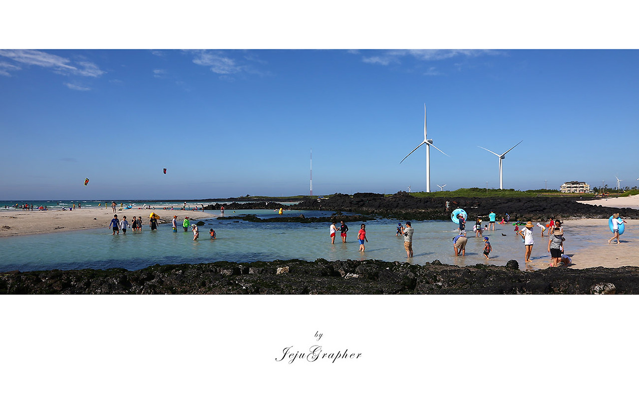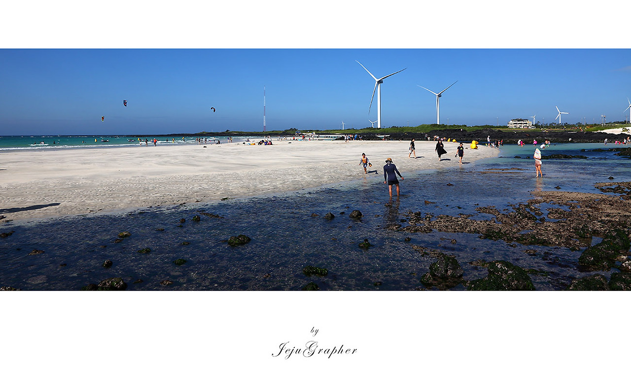 김녕항에서 동쪽으로 몇 km 더 들어가면 김녕성세기해변이 있다. 제주시에서 다소 먼 곳에 있지만 제주의 북쪽 해변이 그렇듯이 온가족이 해수욕을 즐길 수 있는 장소라서 여름에는 제법 인기가 좋다. 단지 해안의 경치만을 따지자면 함덕서우봉과 함께 투톱이다. 그런데 비수기 때는 사람들이 별로 찾지 않는다. 주변에 카페나 식당 등의 부대시설이 거의 없기 때문도 이유인 듯하다. 오히려 김녕보다 더 멀리 있고 더 늦게 알려진 월정리에는 겨울에도 인파로 분비는데... 오래된 성세기해변은 여전히 전통적인 해수욕장이라는 느낌이 강하고, 월정리는 바닷가에 카페가 있는 사시사철 찾을 수 있는 해변이라는 느낌이 강하다.