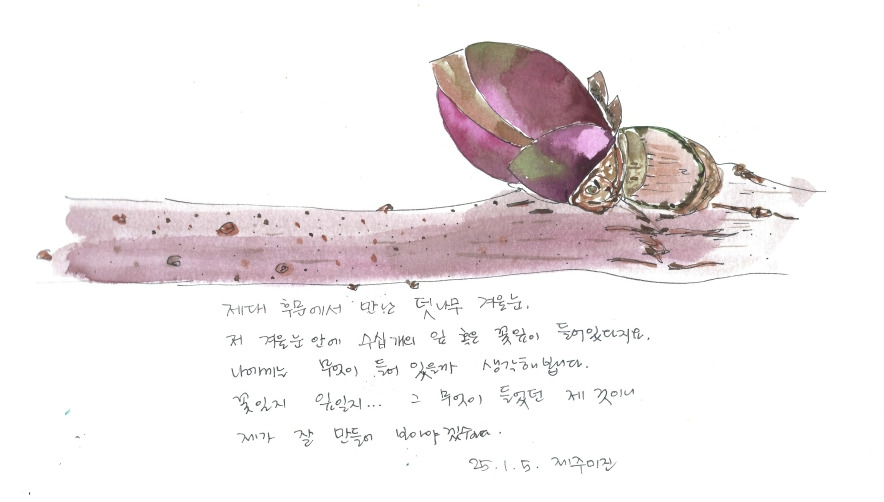 제주 자연을 공부하고 식물을 가까이하면서 몸으로 익힌 것들을 기억하는 방법을 찾아 두리번거렸습니다. 그중 만나게 된 것은 자연관찰일기였습니다. 자연에서 배운 내용을 글을 적으면서 그림도 그리는 것이지요.