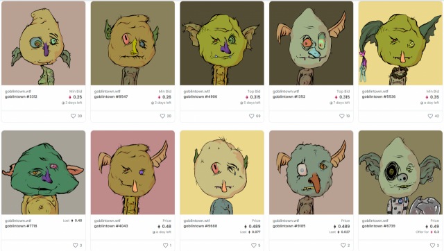NFT시장의 성장 가능성에 대한 설왕설래를 잠재우는 프로젝트가 등장했습니다. 그 주인공은 바로 고블린 타운입니다. 오픈 씨에 따르면, NFT 컬렉션 고블린 타운(Goblintown)의 일일 거래량이 4,800 ETH 이상을 기록하며 오픈 씨에서 하루 동안 가장 많이 거래된 NFT 시리즈에 올랐습니다.