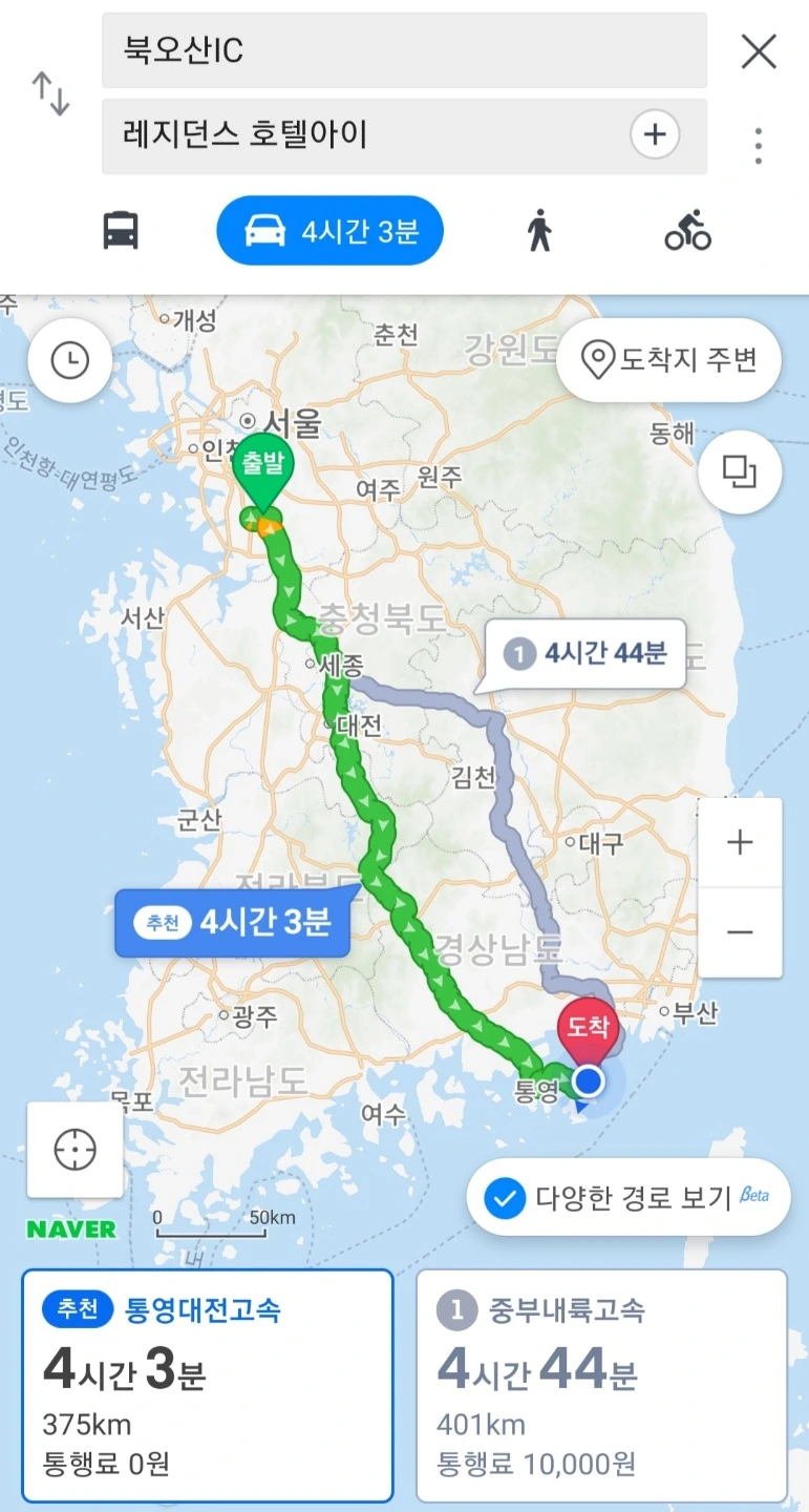 하지만 가도 가도 끝이 없는 이 길의 끝에 나에게 2주간의 낙원을 선사해 줄 거제도가 기다리고 있다는 생각에 꾹 참고 가속페달을 밟았다.