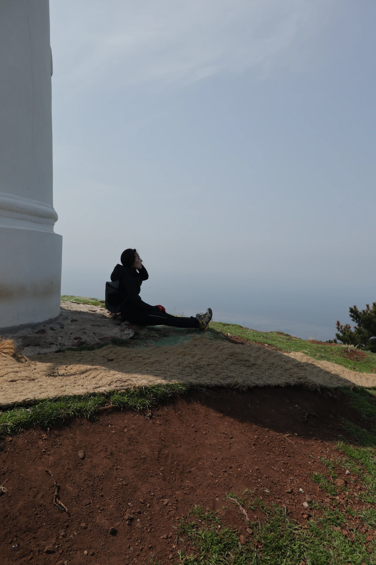 비양봉 정상까지 오르는 것은 그리 어렵지 않습니다. 하지만 정상에 오른 뒤 두 개의 분화구 둘레의 길을 따라 가파른 경사를 두 번 정도 오르게 되니 참고해 주세요. 정상에서 분화구 둘레를 다 돌아야 비로소 등대에 도착할 수 있습니다. 등대에서는 멀리 한라산과 협재, 금능 해변의 모습이 보입니다. 본 섬에서 보았던 모습을 반대 방향에서 바라보니 또 색다른 느낌이었어요.