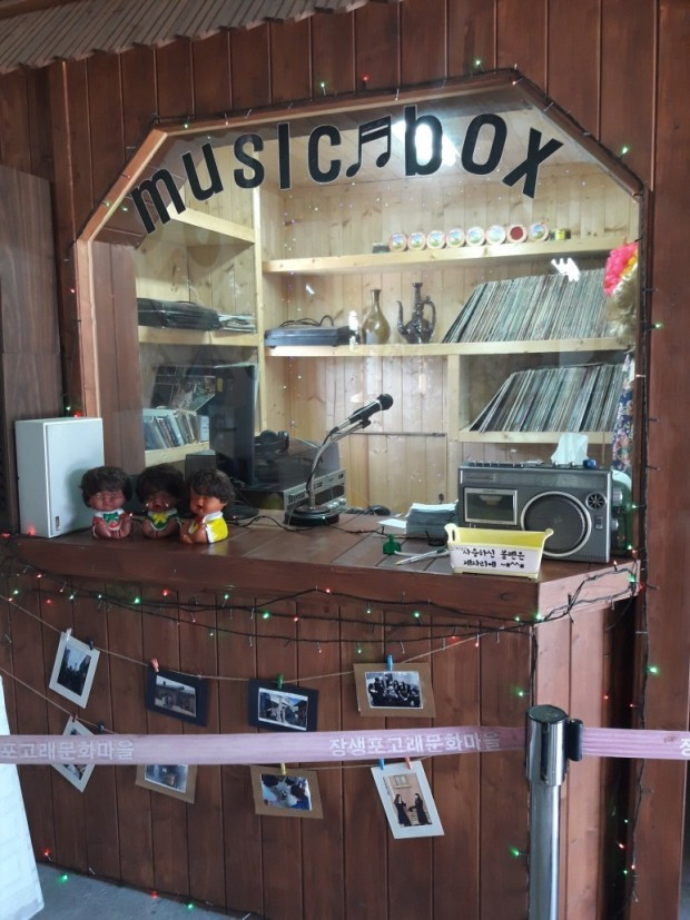 입구에서 가장 눈에 잘 보이는 맞은편에는 뮤직박스가 있다. 뮤직박스에는 벽면 가득 LP판이 꽂혀있다. 이 구역의 최고 멋쟁이 남자인 DJ가 헤드폰을 귀에서 살짝 내려서 목에 걸치고 숙련된 솜씨로 음반을 찾고 있다. 그리곤 이내 마이크에 대고 손님이 보낸 듯한 메모지를 다소 끌리는 듯한 목소리로 읽고 신청곡을 들려준다. 가끔씩은 손님이 메모지와 함께 보내준 커피나 맛있는 "선물에 감사하다"는 멘트도 던진다. 음악 소리는 고막을 진동하고도 남는다. 대화라는 게 이루어 지질 않을 분위기다. 70~80년대 대학가나 도심지에서 흔히 볼 수 있는 풍경이다.
