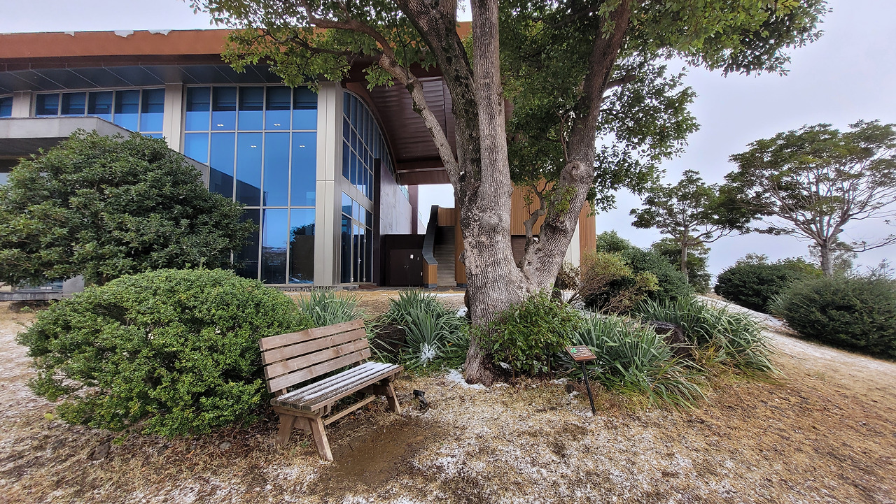 제법 눈이 내린 듯 곳곳에는 눈의 잔해가 남아있다. 잔디와 벤치 위 소복이 쌓였다.