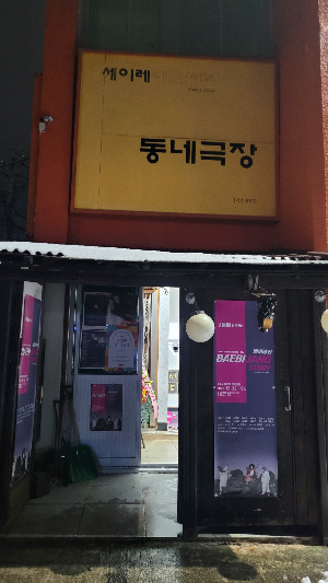 저기일 수도 있겠다 하는 생각에 기웃거려 보니 "세이레 동네극장"이라고 간판이 보인다. 그리고 입구 출입문 한쪽에는 오늘 연극의 포스터가 붙여있다. 맞는 듯싶다.