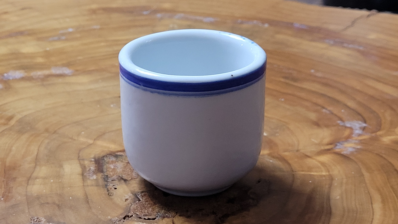 내가 어릴 적부터 아버지가 사용하던 하얀색 사기로 만들어진 두툼한 고뿌다.