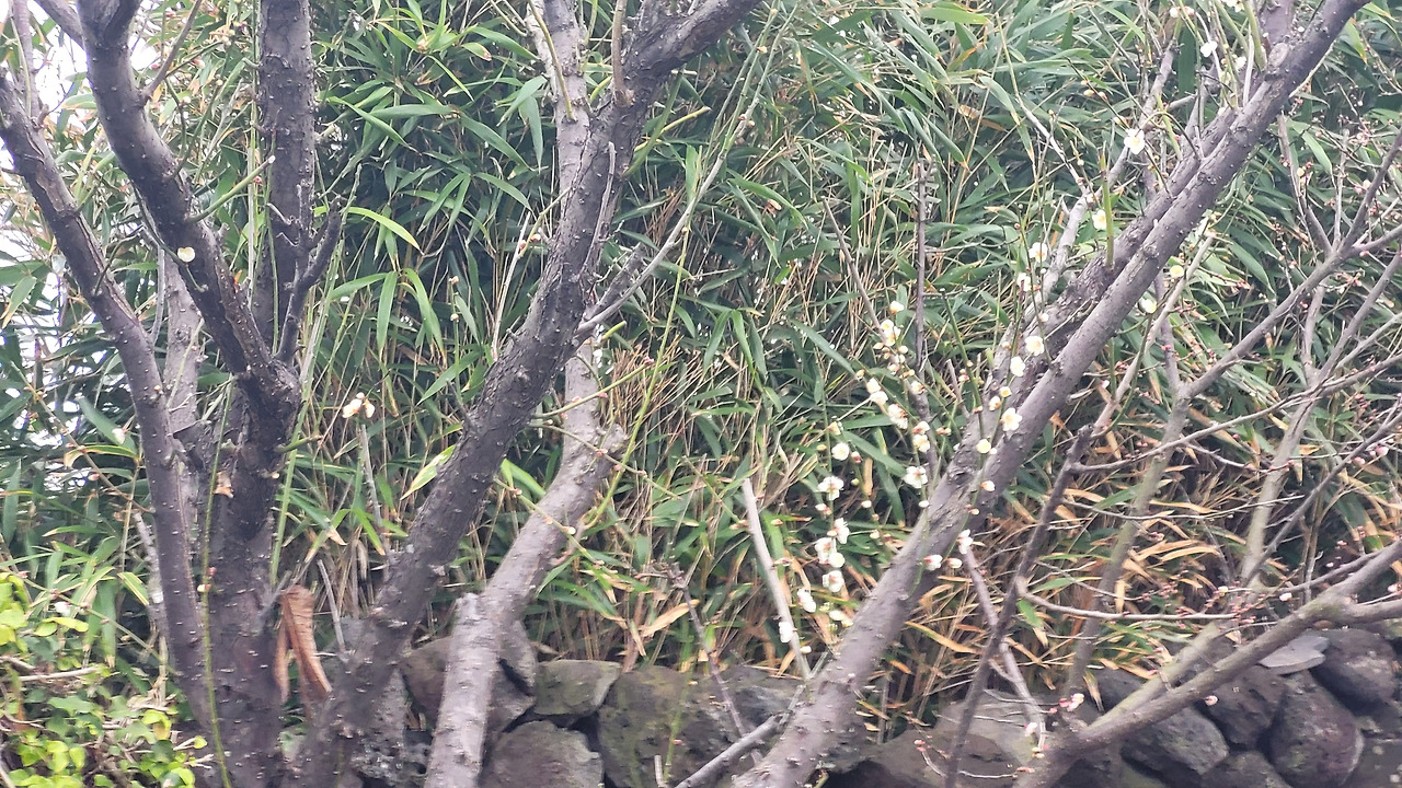 우영팟에 일찍 핀 매화를 보면서