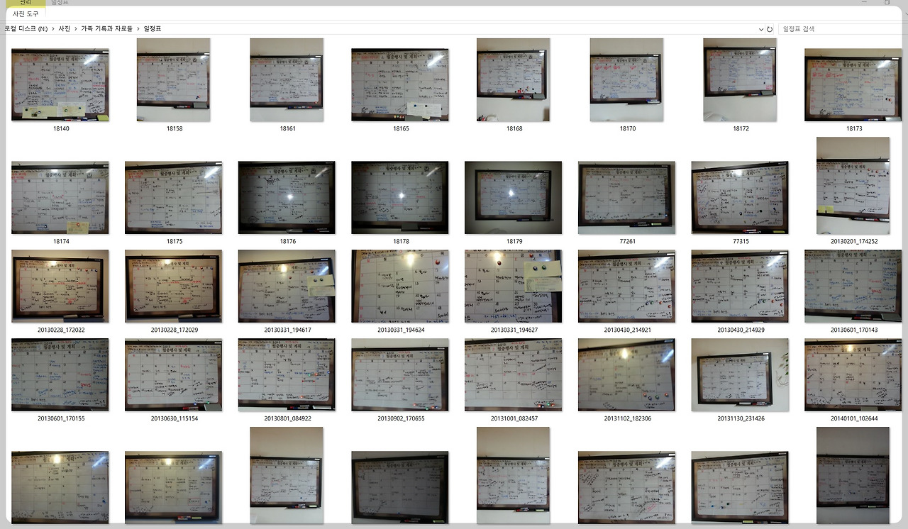 가족기록>일정표 폴더를 가득채운 지난 일정표들