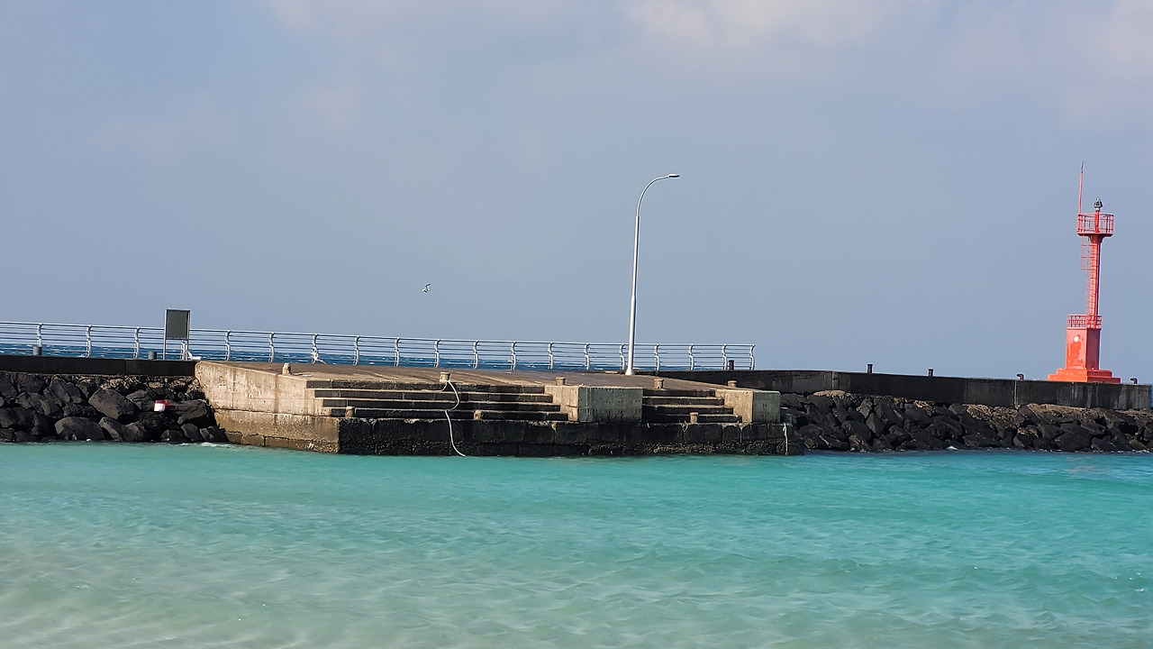 삼달리 비닷가로 나오는 빨간 등대가 있는 해변