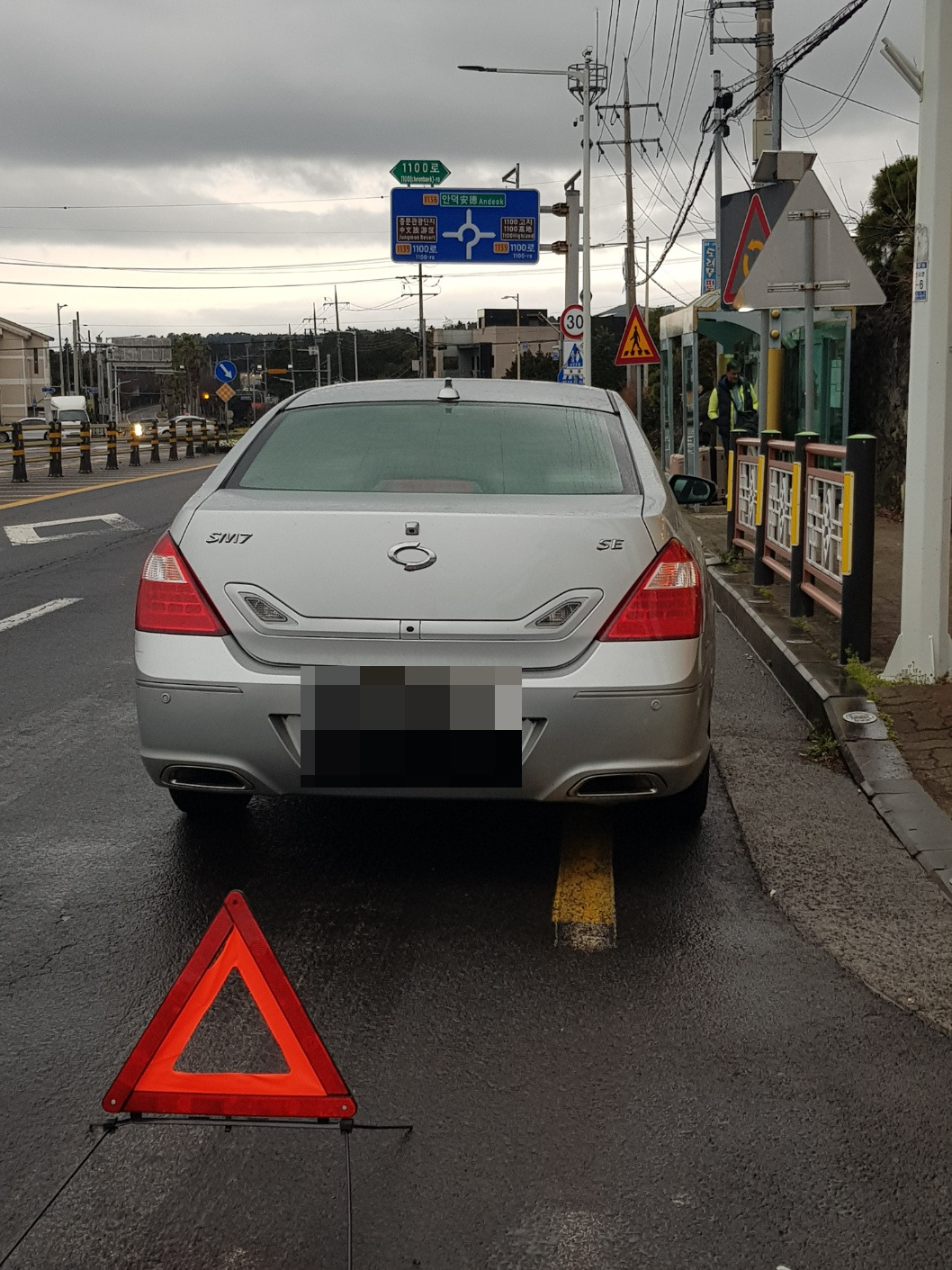 "고장 차량을 표시하는 삼각대를 세워야 하지 않나요?" 아내가 얘기했다.