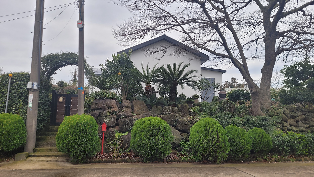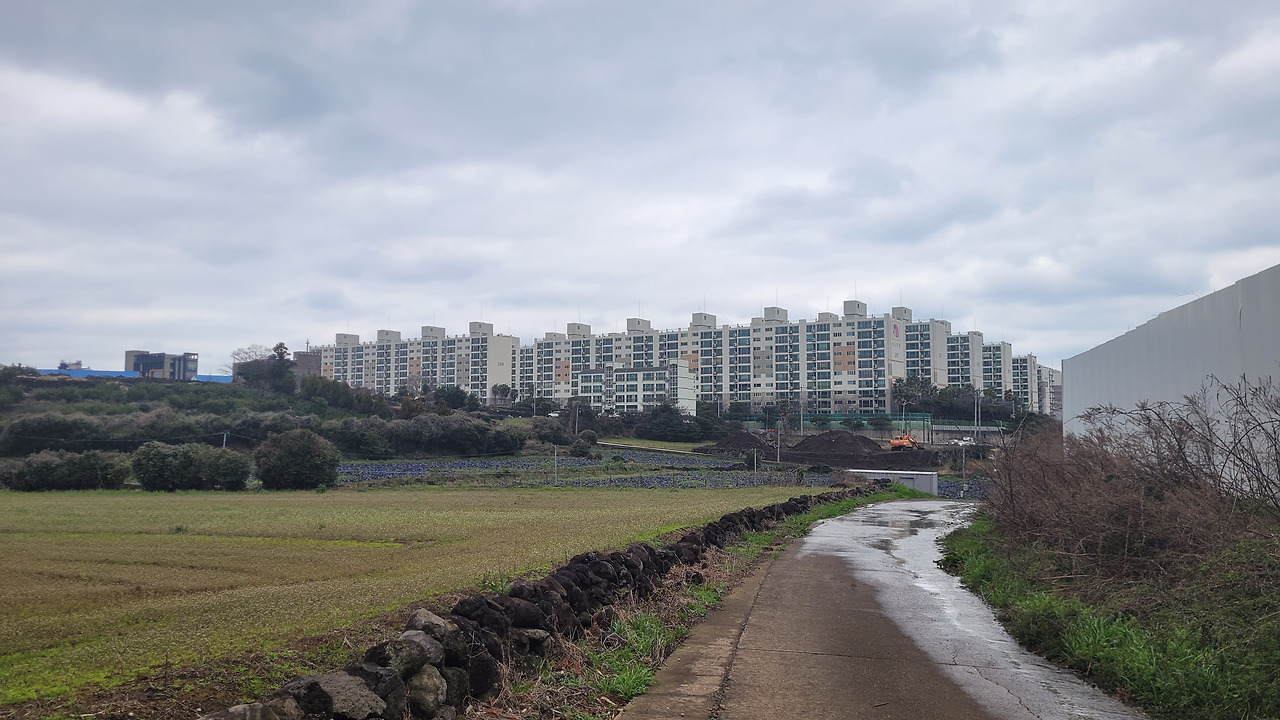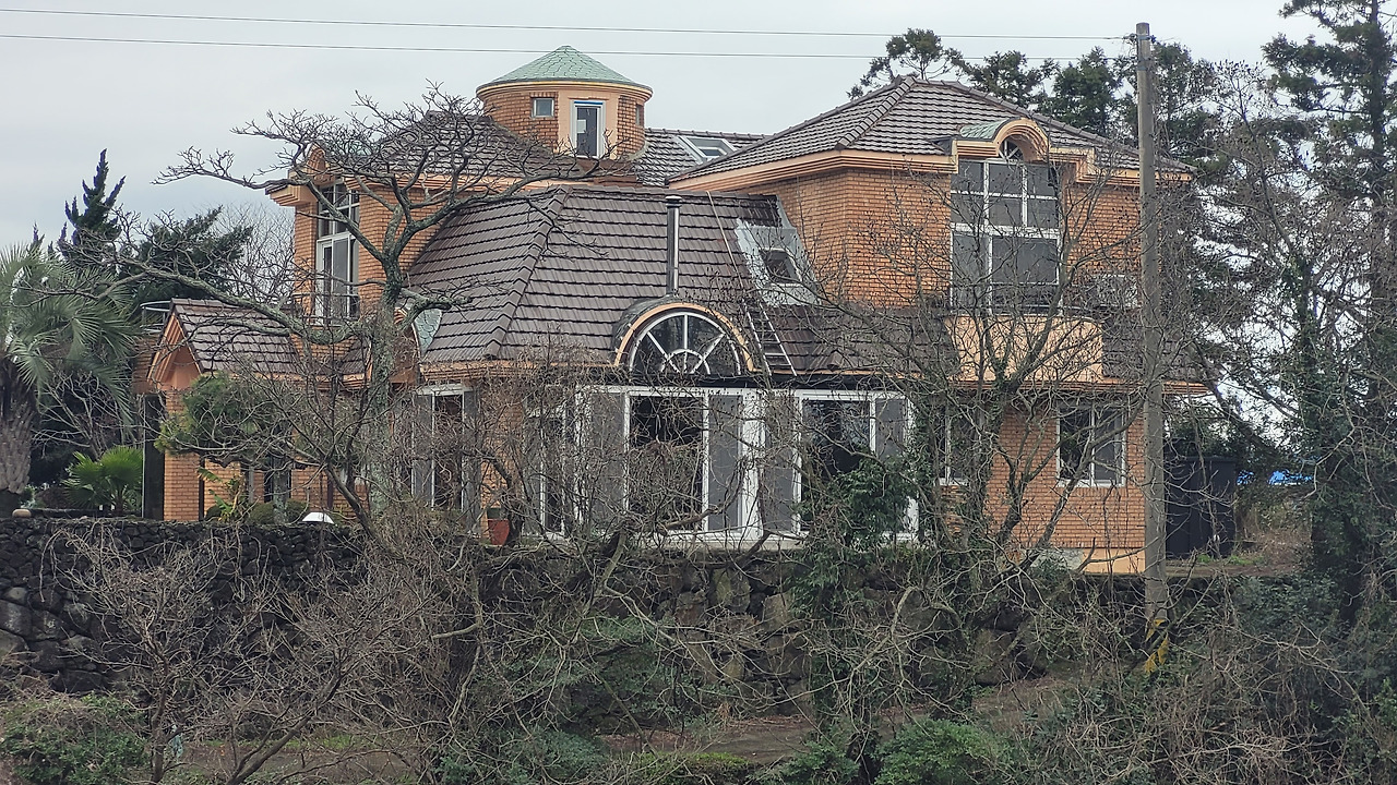 주택지가 아닌 과수원이나 밭에 들어섰다. 외관으로 봐서는 항상 문이 닫혀 있는 별장, 세컨드 하우스 정도로 보이는 곳도 있고, 사람이 오가는 주택, 카페와 같은 상업용 건물과 정체를 모를 곳 들도 있다. 올레길을 걷다가 불쑥불쑥 나타나는 동화 속 집에 당황하기도 한다. 이주의 바람을 타고 여기저기 산만하게 들어선 건물들이 이제 사람이 떠나면서 폐가가 되지나 않을까하는 걱정이 앞서기도 한다.