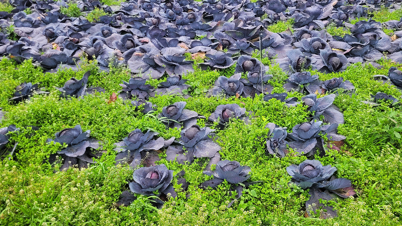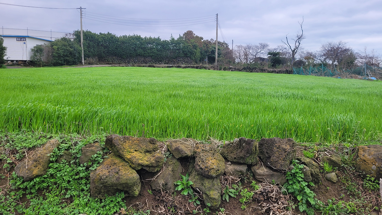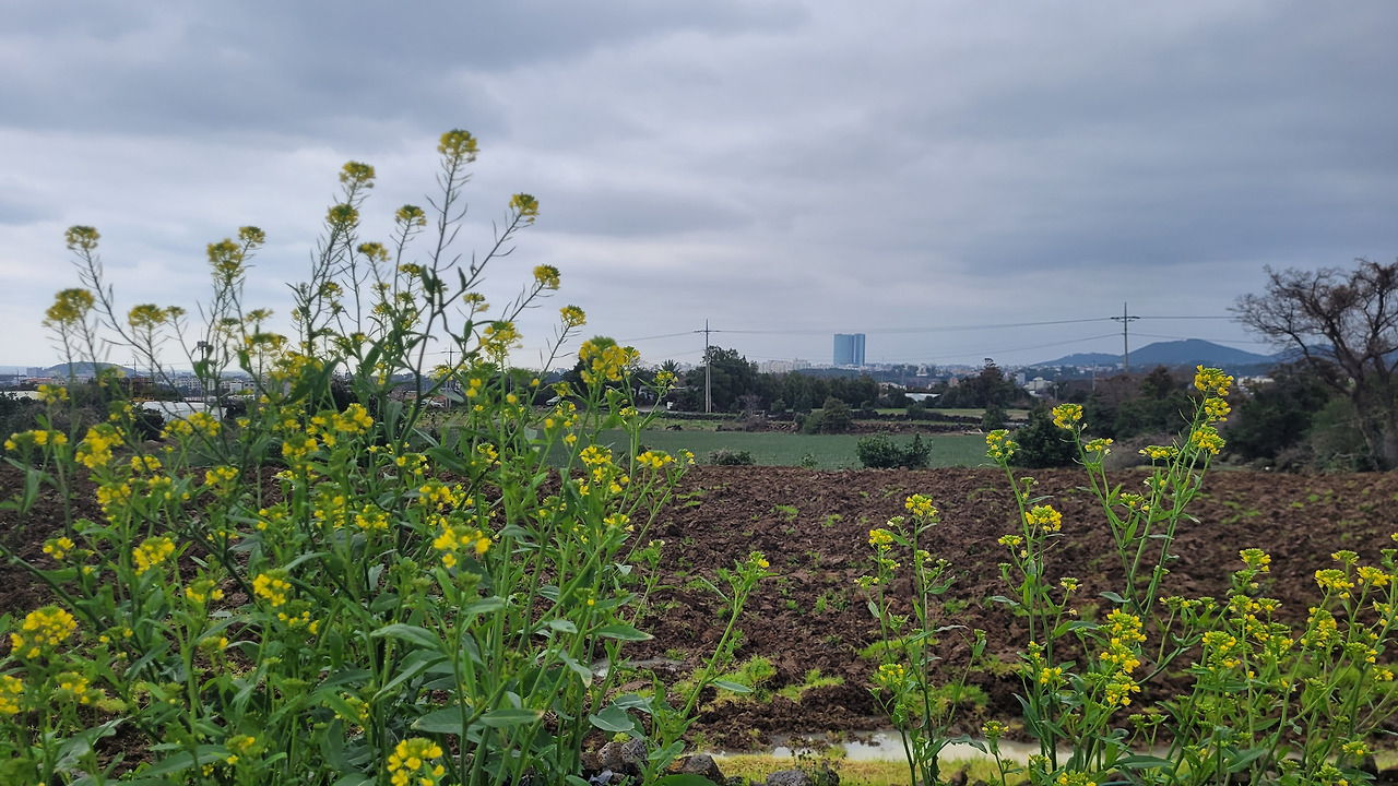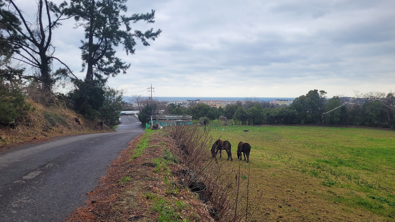 비 갠 아침이라 대지는 촉촉하게 빗물을 머금고 파릇파릇 돋아나는 보리와 유채꽃, 수확하다 만 양배추는 싱그러움을 더해준다. 종종 방목하는 말들과 담 너머로 탱글탱글하게 달려있는 귤나무도 볼 수 있다.