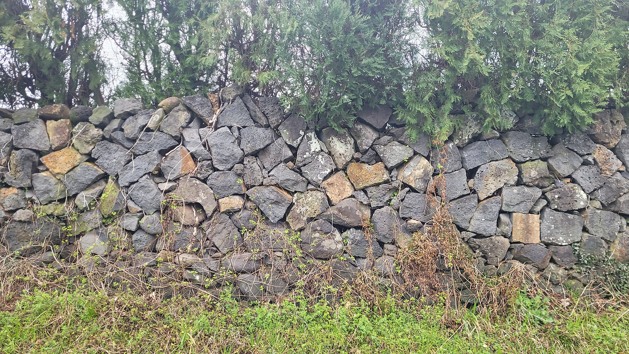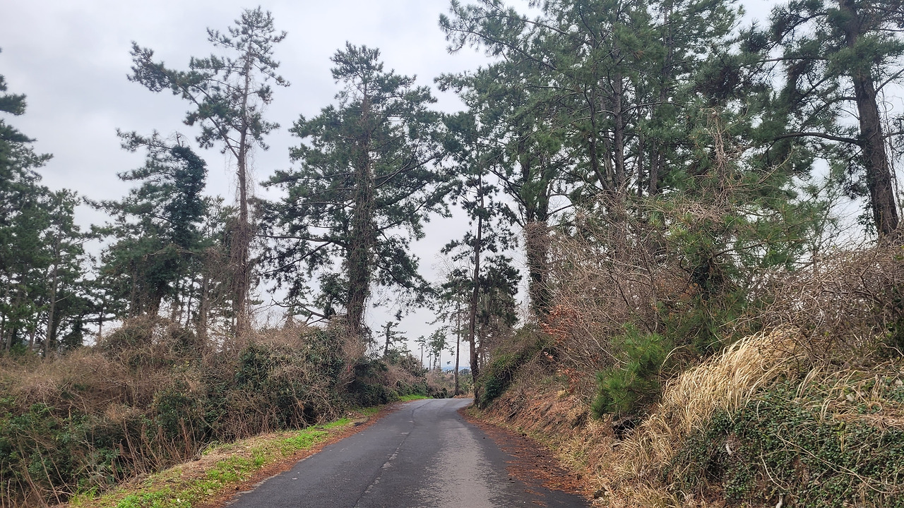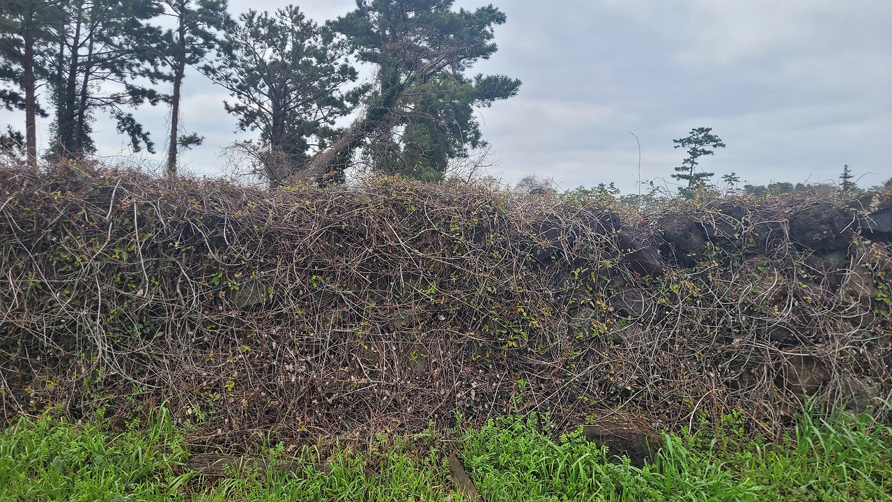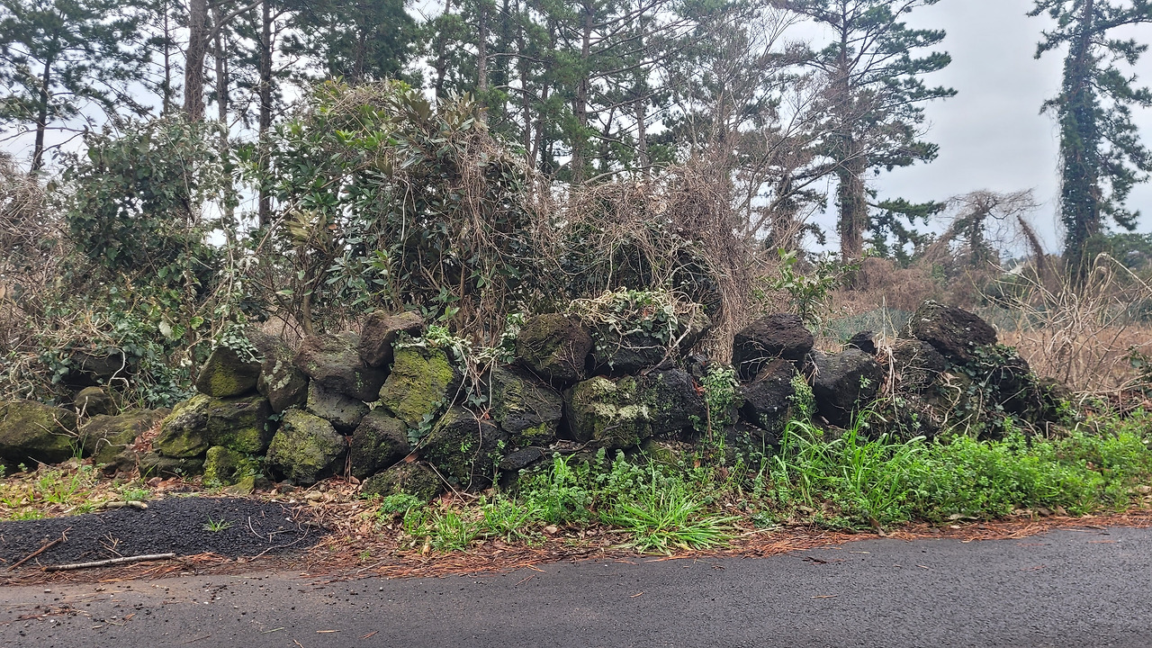 길옆에는 대부분 과수원이나 밭들이다. 높지 않은 밭담 너머로는 과수원과 밭이 훤히 보인다.