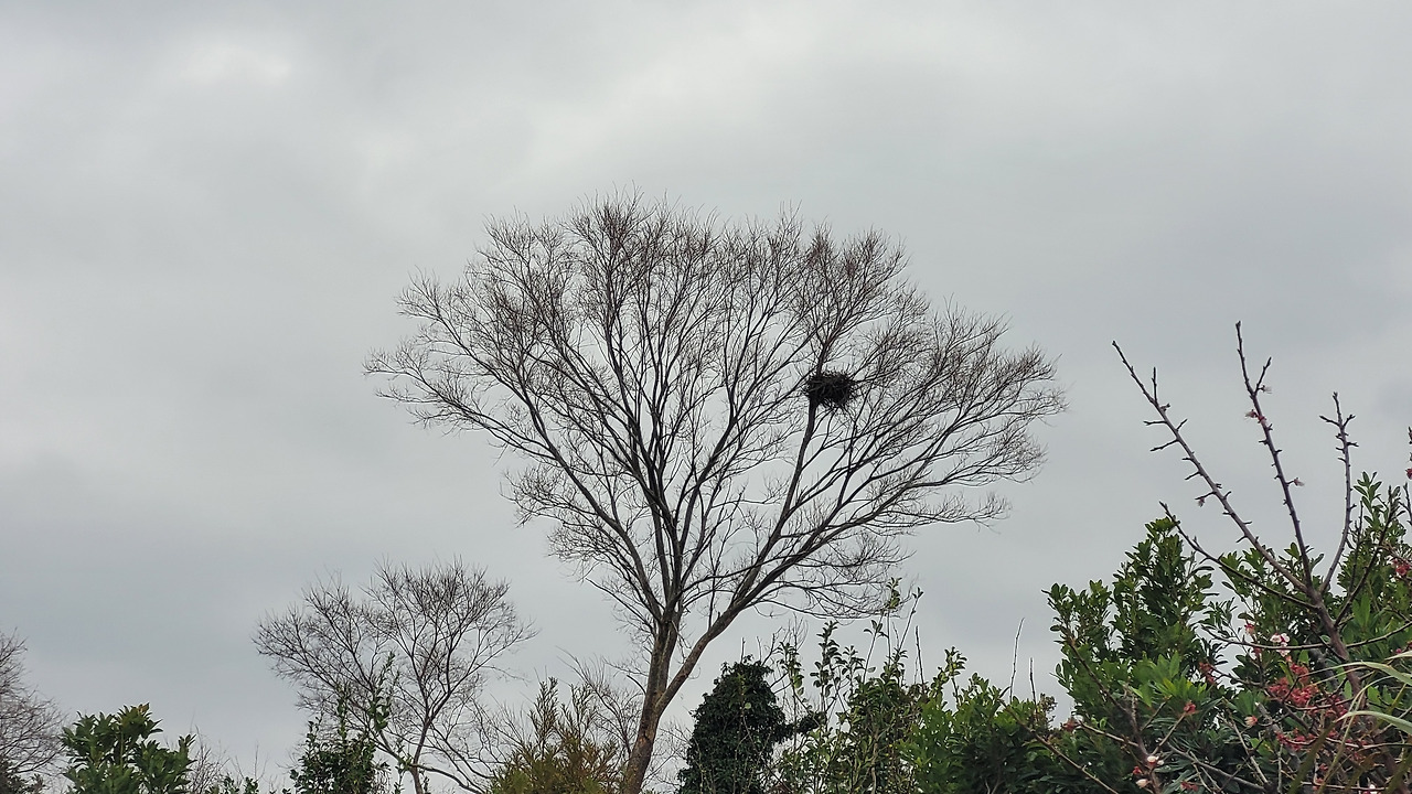 겨울철이라 앙상하게 남은 나무 끝에 자리를 잡고 있는 새집이 유난히도 크게 보인다.