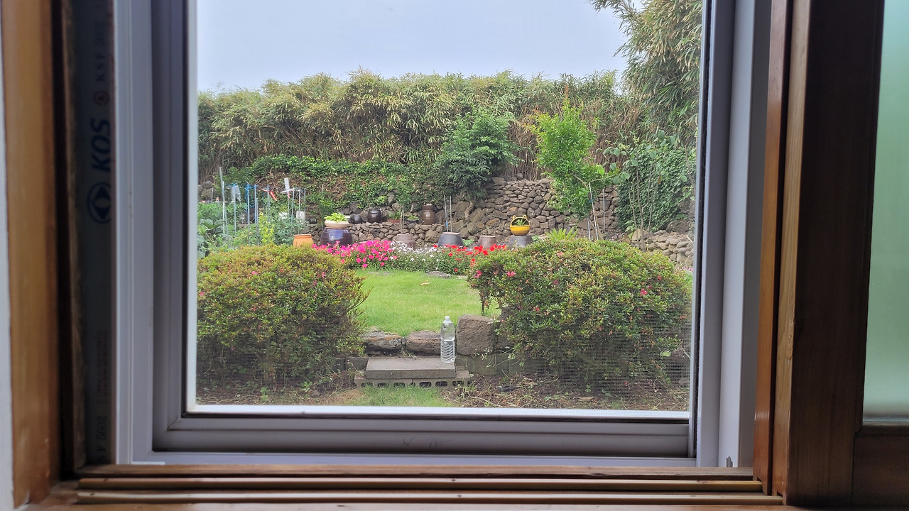 책상에서 뭔가를 하다가, 잠시 고개만 들어 밖을 본다. 오래된 창틀이라는 액자에 갇힌 세상이 보인다.