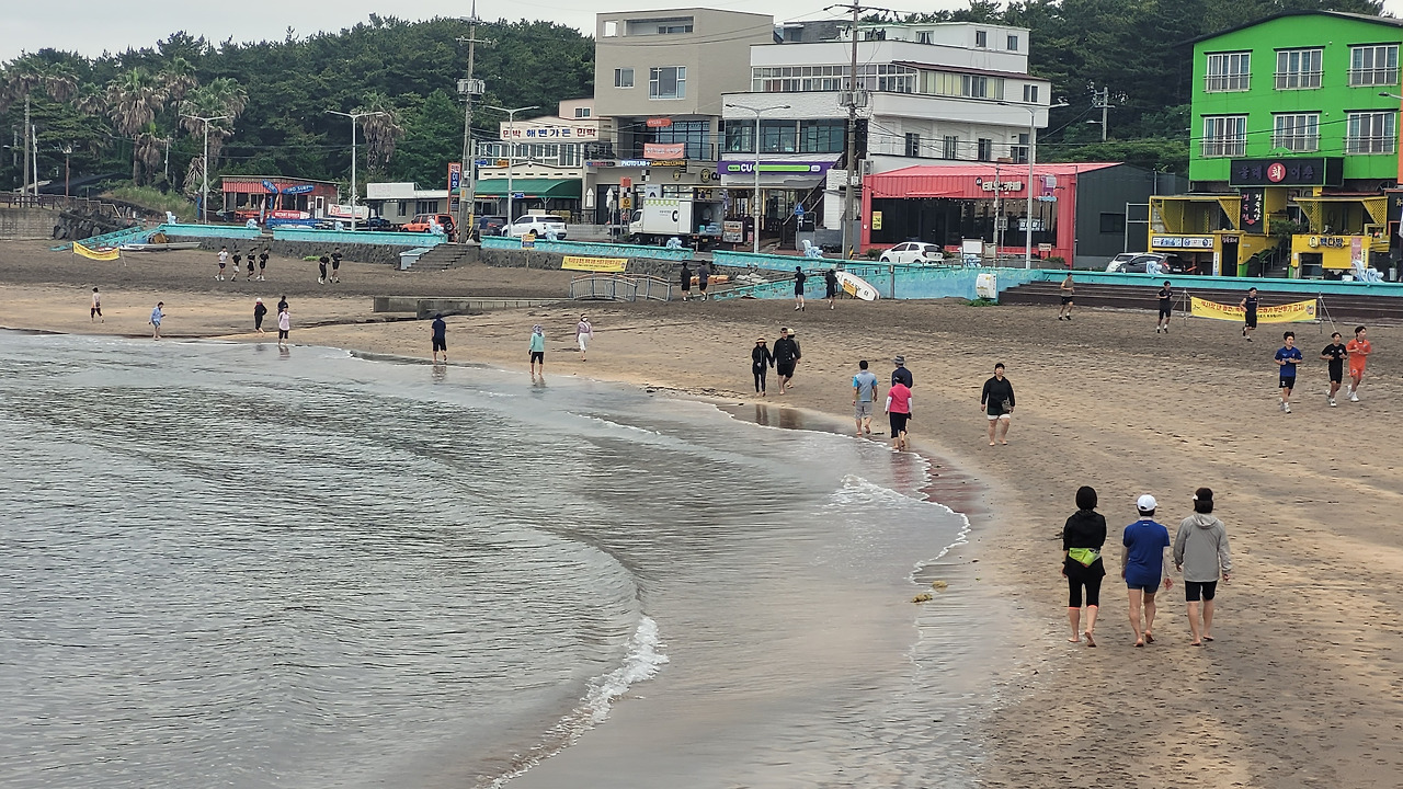 멀리서 보는 해수욕장 모래밭에는 사람들이 꽤 많아 보인다. 아침시간 뭘 하기에 사람들이 많지하는 궁금증이 생긴다. 무리를 지어서 뛰는 젊은이들도 보였다. 손에는 뭐를 들고 있는 사람들도 보였다. 반환점을 찍고 돌아오려다 궁금증을 해소해야 할 것 같아서 모래밭으로 들어갔다. 모래밭 맨발 걷기를 하는 사람들이었다. 손에 든 건 신발이었고, 젊은 무리는 아마도 전지훈련을 온 운동선수들인 것 같았다.
