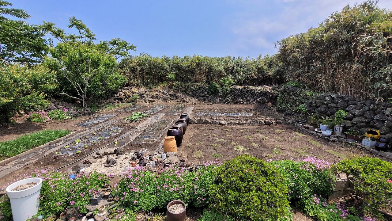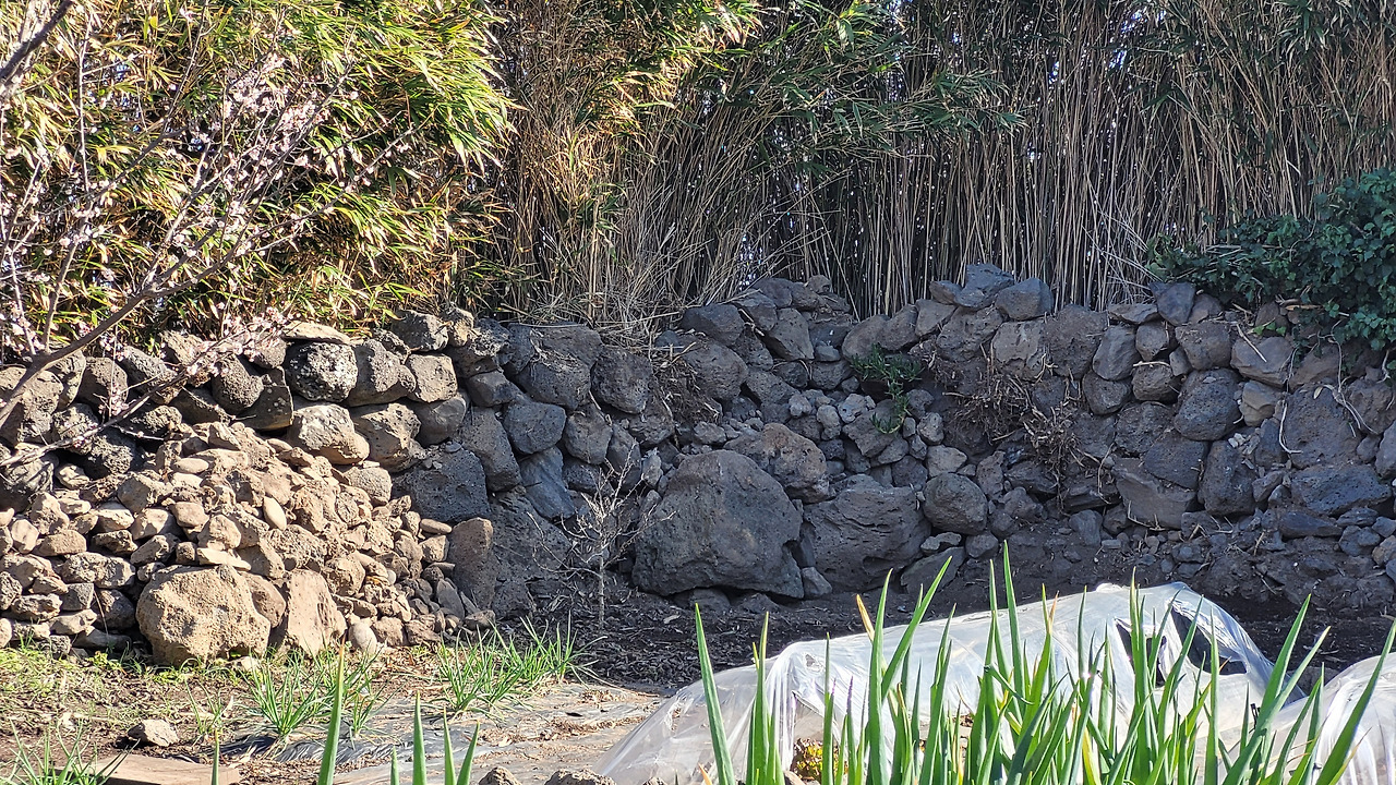 텃밭에 농사를 못 지을 정도로 대나무가 침범한 상태라 작년에 대대적인 대나무 정리작업을 했다. 약을 치고 몇 달간 기다리다가 다시 약을 치고, 몇 달을 기다리는 작업을 반복하다 보니 울창했던 돌담사이 대나무들이 누렇게 시들어 갔다. 텃밭 경계도 제모습을 찾기 시작했다. 시들어 버린 대나무를 제거하는 작업을 하다 보니 밭경계가 홑담이 아닌 겹담인걸 발견했다. 홑담은 한 겹으로 쌓은 담이고, 겹담을 그위로 사람이 지나갈 수 있을 정도로 여려 겹으로 붙여서 쌓은 돌담구조다. 겹담으로 되어 있는 면적이 꽤 넓어서 정리를 하면 텃밭의 구조가 선명해지고 넓어질 것 같아서 아내와 상의 끝에 정리작업을 하기로 했다. 그게 작년 여름일 게다.