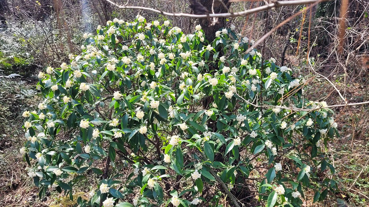 그런데 저지곶자왈의 군락지라고 하는 백서향이 별로 보이지 않는다. 가끔 눈을 크게 뜨고 가시덩굴 속을 쳐다봐야 부끄러운 모습을 보여줄 정도다. 군락지라고는 하나 우리가 일반적으로 생각하는 그 정도의 군락지는 아니고, 단지 다른 데보다 많다는 뜻으로 보면 된다고 안내를 해준다.