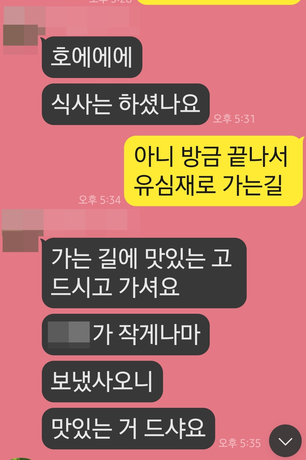 "고생하셨습니다. 저녁에 맛있는 거 사드세요."