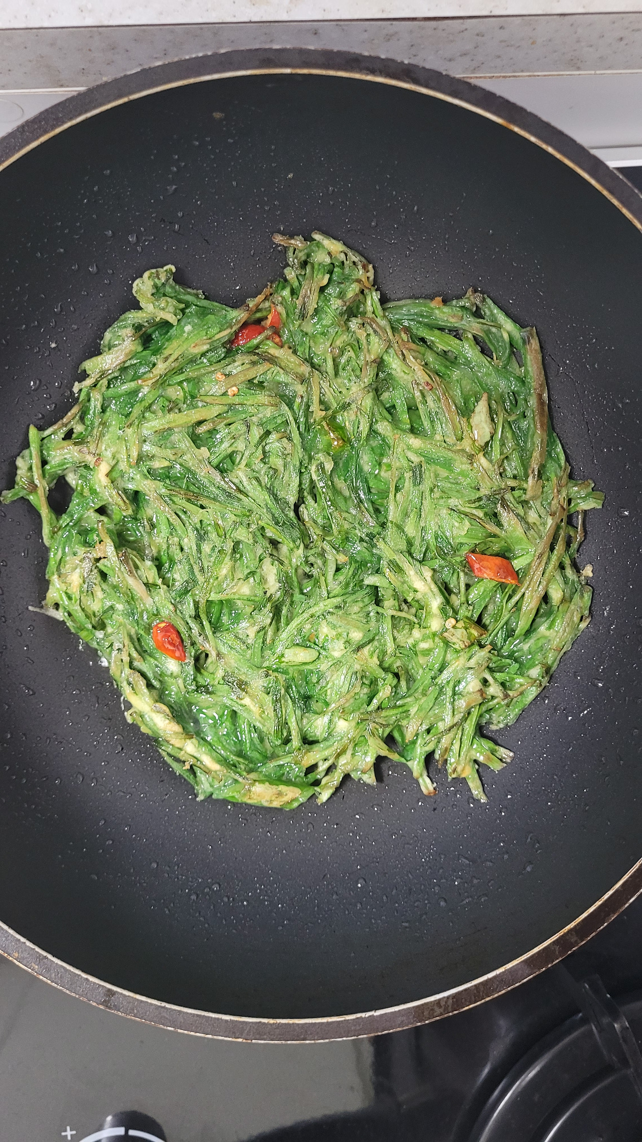 아내는 빗줄기를 뚫고 텃밭으로 가더니 부추를 용감하게 가위로 한 움큼씩 몇 번을 싹싹 자르고 들어왔다. 부추를 씻다가 "아차, 고추.."라는 소리를 지르고는 텃밭으로 다시 가더니 청양고추 몇 개를 따가지고 왔다. 농촌에서 텃밭은 이래서 좋다. 싱싱한 식재료, 필요한 식재료를 필요한 만큼 즉시 조달할 수 있다. 이렇게 재료가 준비되고, 슥싹슥싹 반죽이 만들어졌다.