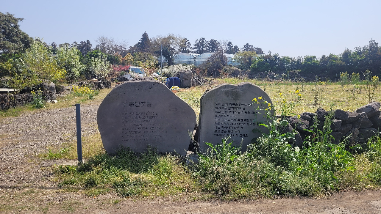 낯선 이방인들도 보인다. 올레 16코스를 걸어가는 올레꾼들이다. 요새는 휴일여부를 가리지 않는다. 평일에도 길을 가는 나그네들이 꽤 있다. 시비석은 오늘도 열일을 하면서 오가는 사람들에게 길을 안내한다.