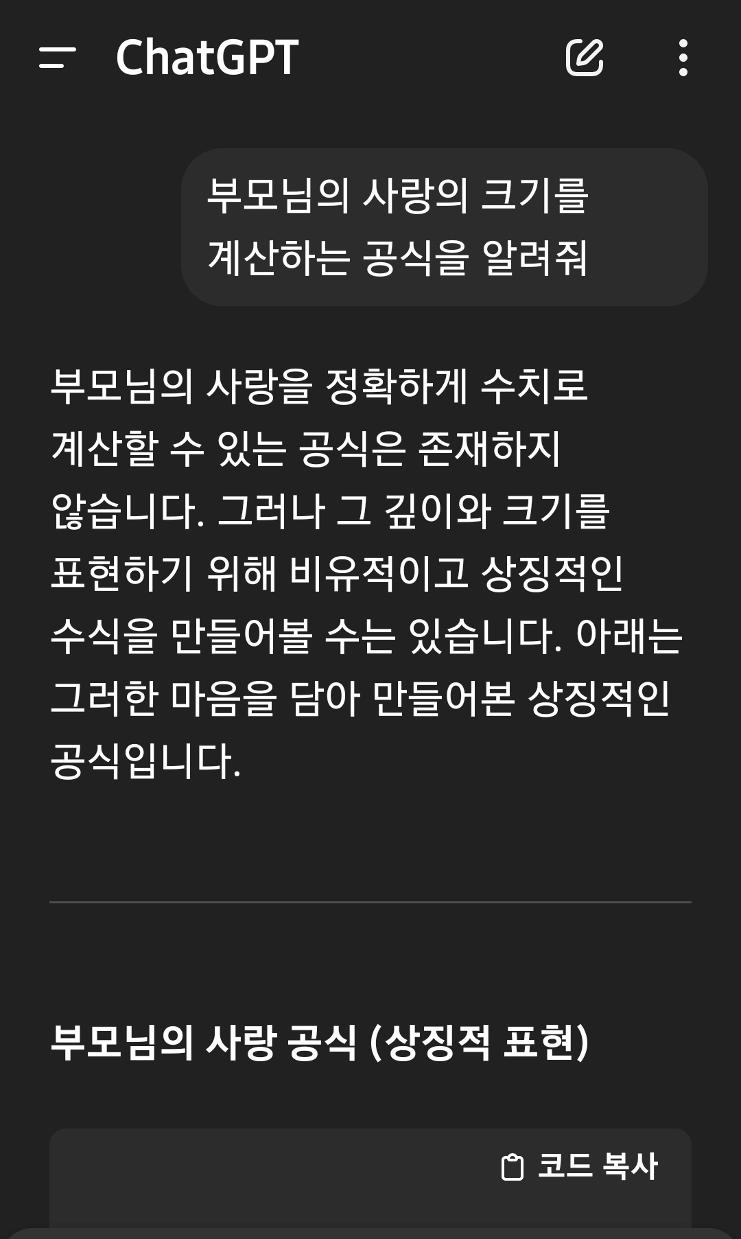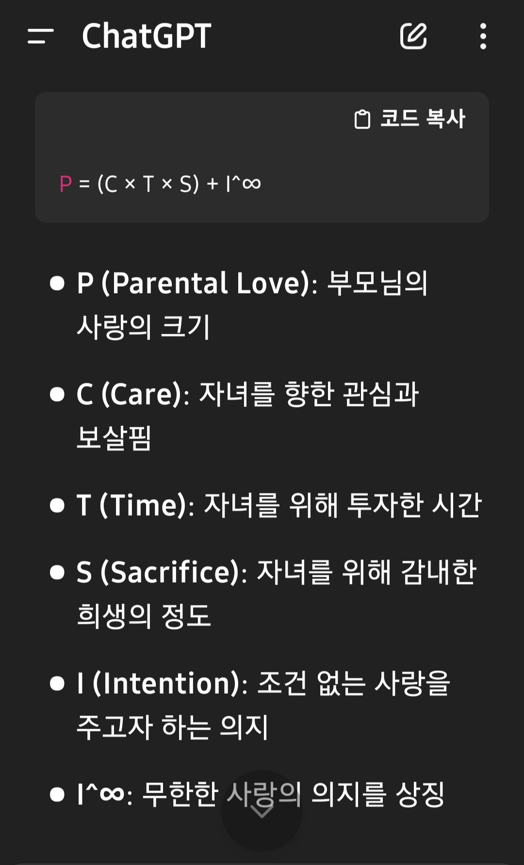 무심코 ChatGPT에서 물었다. 상징적인 공식이라며, 의미 있는 대답을 준다. 말 그대로 상징적이다.