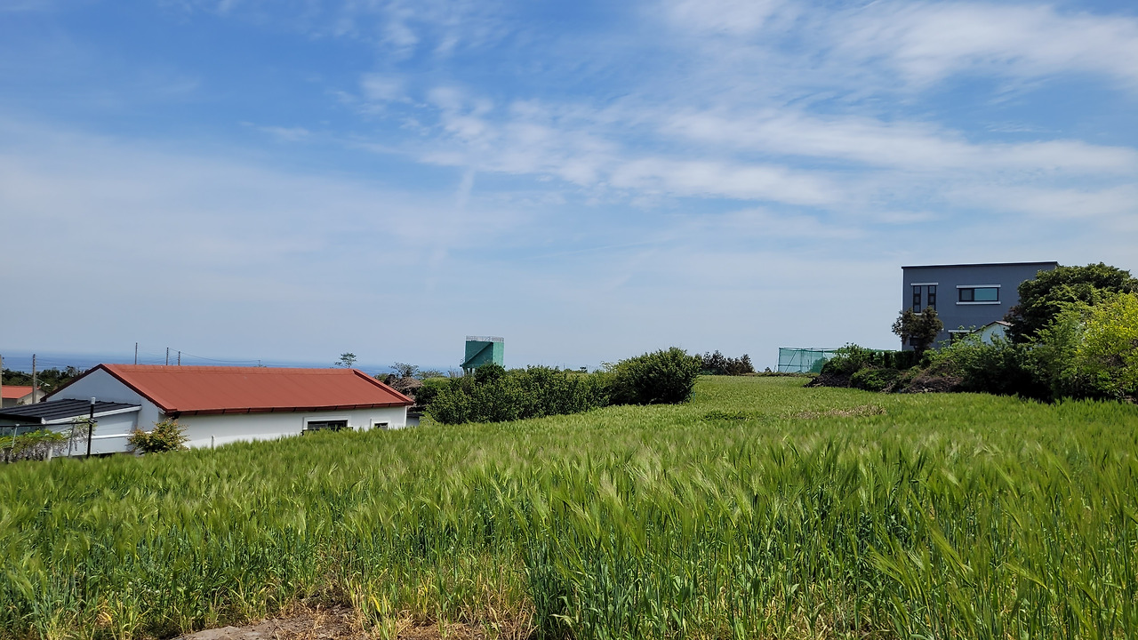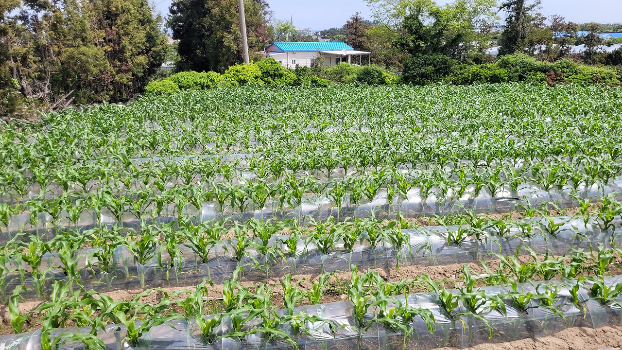 상귀리 마을 본동과 항파두리 성사이에는 소왕이라는 자연마을이 있다. 마을에서는 소앵동이라고 부른다. 위치적으로는 수산리와 경계라 애매하기는 하다. 수산리 예원동이라는 자연마을의 마을회관이 소앵동에 위치해 있다. 행정상으로는 불분명하지만 비교적 고지대에 위치한 오래된 마을이다. 여기에 소왕옛길이 있다고 한다. 가파른 마을길을 쉬멍쉬멍 올라갔다. 마을가운데는 오래된 팽나무 그늘에는 "마을이 앵무새 모양이라고 해서 소앵동"이라는 마을 표지석이 있다. 마을 가운데를 지나 옛길로 들어섰다. 잘해야 우마차가 다녔을 정도의 농로 외길이다. 멀리는 수평선이 한눈에 들어온다. 파란 바다에 파란 하늘이라, 그리고 푸른 밭을 보니 가슴이 탁 트인다. 이 동네가 초당옥수수 주산지라 가는 곳마다 옥수수 밭이다. 막혀있던 잣길도 여행코스를 만들면서 정리를 했다고 수고를 하소연한다. 잘한 일이다. 제주의 밭에는 잣길이 있어야 한다.